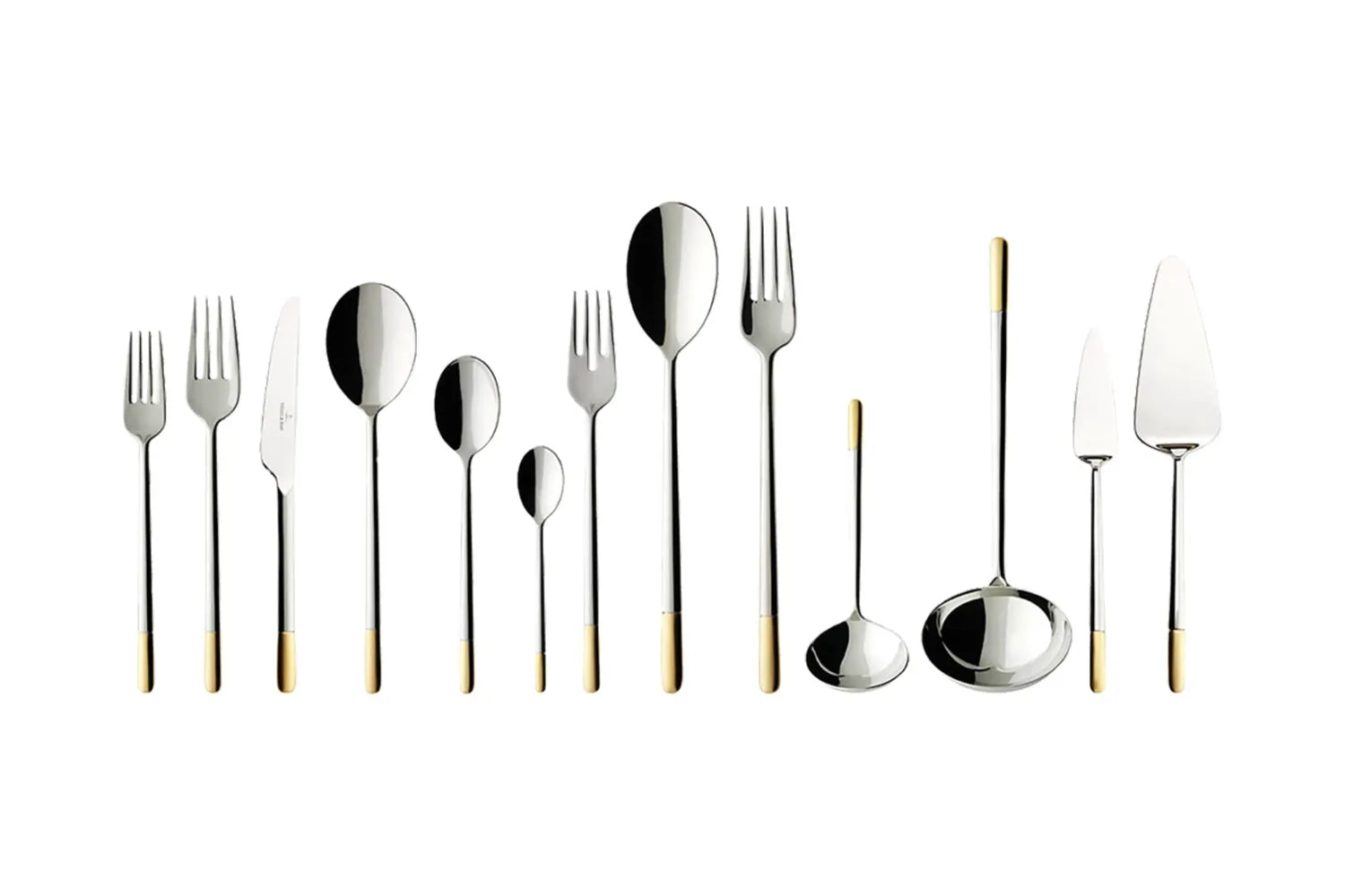 Besticken är tillverkade i högkvalitativt rostfritt stål med inslag av förgyllda detaljer längst ned på skaften, vilket gör serien till en riktig blickfångare. Med sin harmoniska balans mellan klassisk elegans och modern lyx är setet en självklar del av en sofistikerad dukning. Alla delar är maskindiskbara för smidig användning och enkel rengöring.