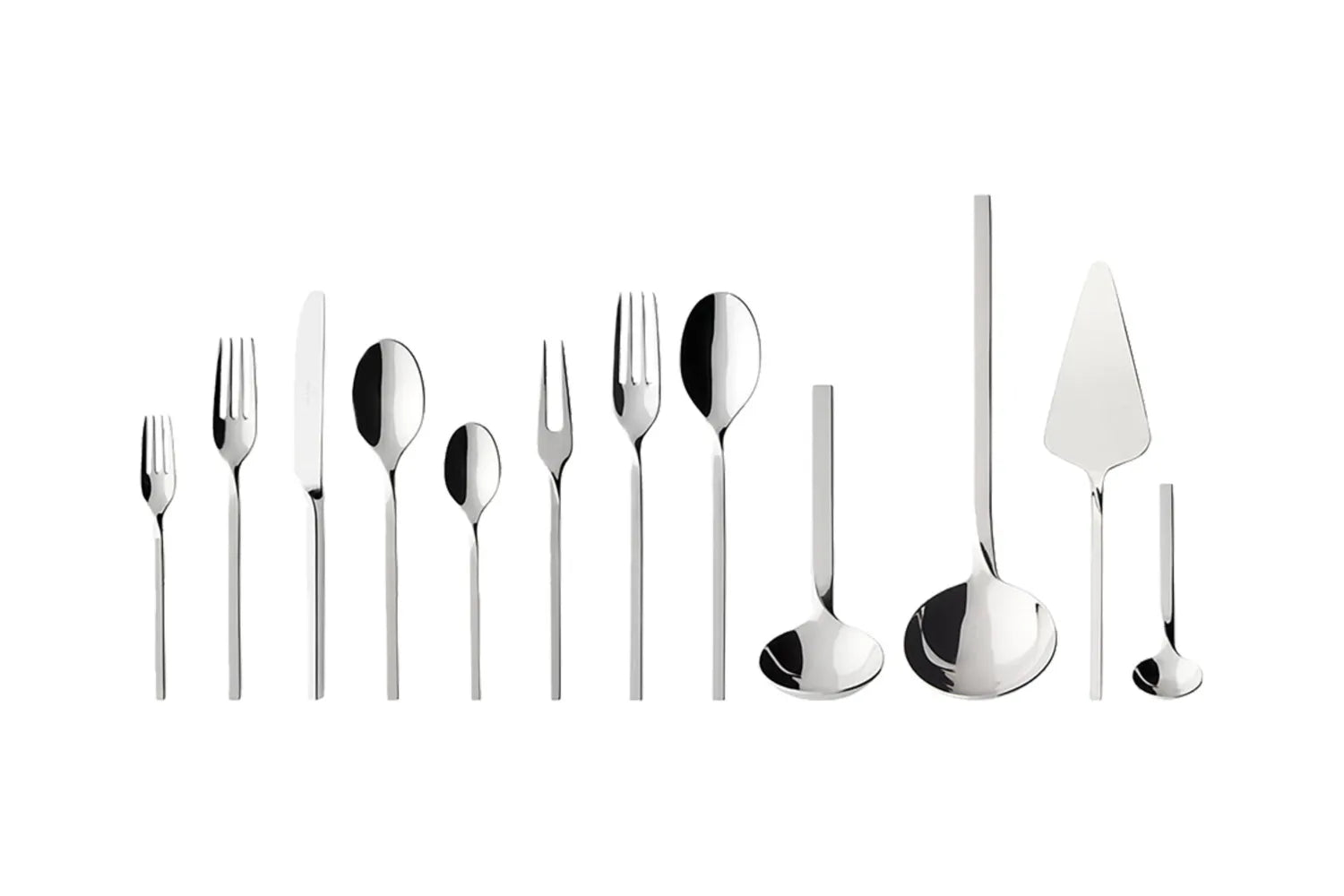 12 x Villeroy & Boch NewWave Soppsked, 12 x Villeroy & Boch NewWave Matgaffel, 12 x Villeroy & Boch NewWave Matkniv, 12 x Villeroy & Boch NewWave Kaffesked, 12 x Villeroy & Boch NewWave Dessertgaffel, 1 x Villeroy & Boch NewWave Stekgaffel, 2 x Villeroy & Boch NewWave Serveringsgaffel, 2 x Villeroy & Boch NewWave Serveringssked, 1 x Villeroy & Boch NewWave Såssked, 1 x Villeroy & Boch NewWave Tårtspade