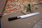 Suncraft Senzo Brödkniv 220mm är en kniv som är speciellt utformad för att ge en perfekt skärning genom alla typer av bröd, från krispiga surdegsbaguetter till mjuka skivor av vitt bröd. Med sin professionella design och högkvalitativa material är denna kniv ett måste för både bakentusiaster och kockar som söker en pålitlig och effektiv brödkniv.