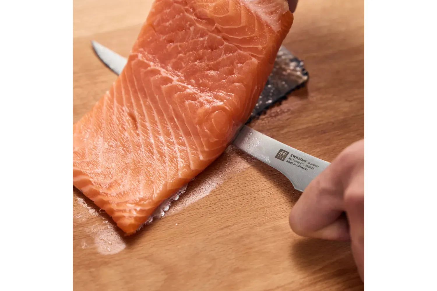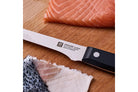 Det klassiska handtaget med trerivetsdesign och lasergraverad logotyp blir en stilfull detalj i köket, medan filéknivens smala och flexibla blad gör den idealisk för att filéa kött eller fisk med precision och lätthet.