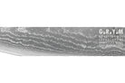 Knivbladet består av totalt 67 lager damaskusstål, med en kärna av MOV Carbochrome-stål och 33 lager mjukare stål på vardera sida. Konstruktionen ger en optimal balans mellan hårdhet och seghet, vilket resulterar i ett mycket vasst blad som håller skärpan länge. Det etsade damaskusmönstret gör varje kniv unik.