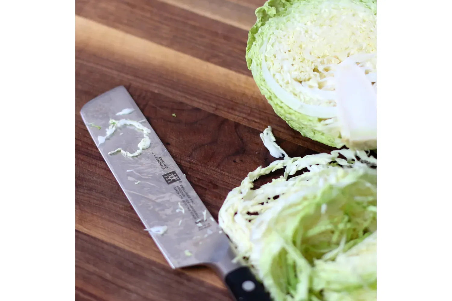 - Håll kniven i rätt vinkel – För att få ett rent snitt och maximera kontrollen, håll bladet i en 45-graders vinkel mot grönsaken.