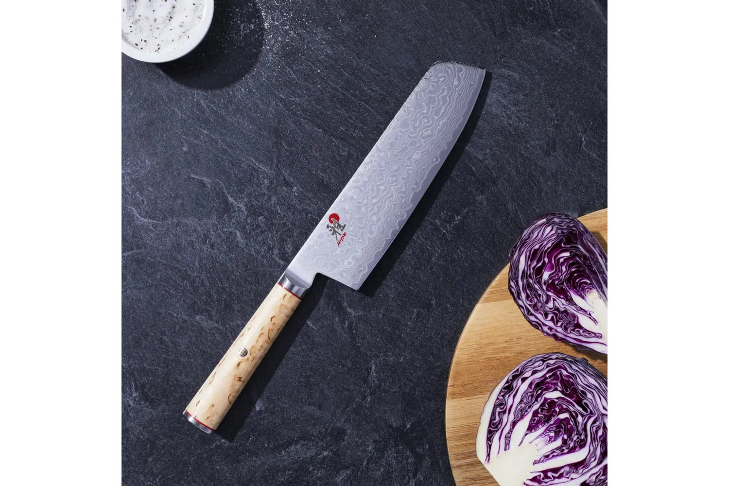 Nakiri – det kallas en grönsakskniv i Japan. Och som namnet antyder passar den traditionella japanska kniven utmärkt för att strimla grönsaker och örter. Formen påminner om en köttyxa, men ska inte förväxlas med en sådan. Det vassa, fint slipade bladet lämpar sig inte för att hacka. Med den högklassiga Nakiri-kniven i MIYABI-serien 5MCD tar du in estetik och tradition från Fjärran Östern i ditt kök. Kärnan av mikrokarbid-pulverstål MC63 omges av 1 lager av två olika sorters stål med olika hårdhet. Dessutom har det 17 cm långa bladet härdats med den speciella CRYODUR-metoden. Nakiri-kniven får sin unika skärpa genom den klassiska japanska Honbazuke-slipningen som ger ett symmetriskt skär med en vinkel på ca 19 °C. Handtaget av masurbjörk ligger inte bara bra i handen. Med sin mjuka ljusbruna färg gör den även Nakiri-kniven till ett vackert blickfång.