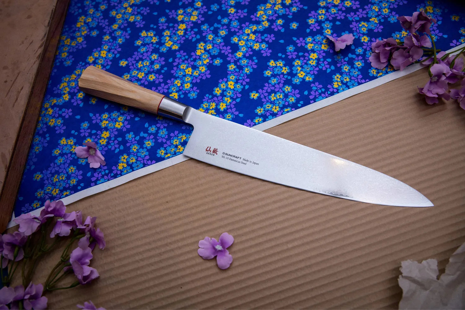 Suncraft Swirl 240 Gyuto är tillverkad av VG-10 stål, känt för sin enastående skärpa och motståndskraft mot korrosion. Kniven är smidd med 33 lager Damaskussmide, vilket ger ett vackert, mönstrat blad och en förbättrad hållbarhet och prestanda. Med en hårdhet på 60-62 HRC erbjuder denna Gyuto-kniv långvarig skärpa och slitstyrka, vilket gör den idealisk för en rad köksuppgifter, från stora skärjobb till detaljarbete.