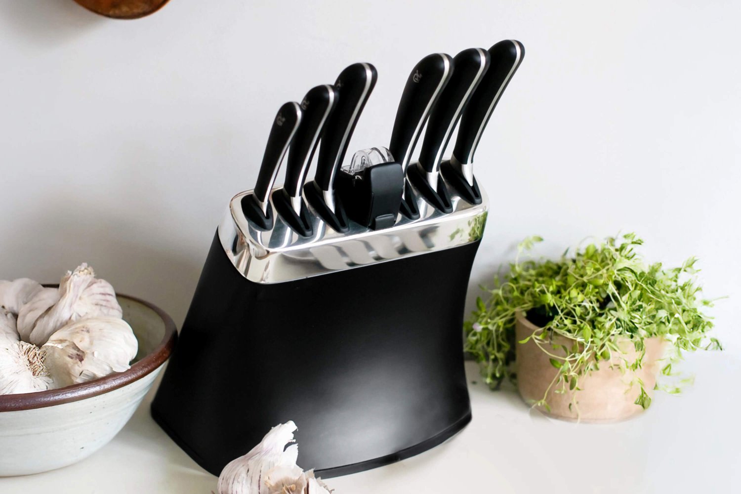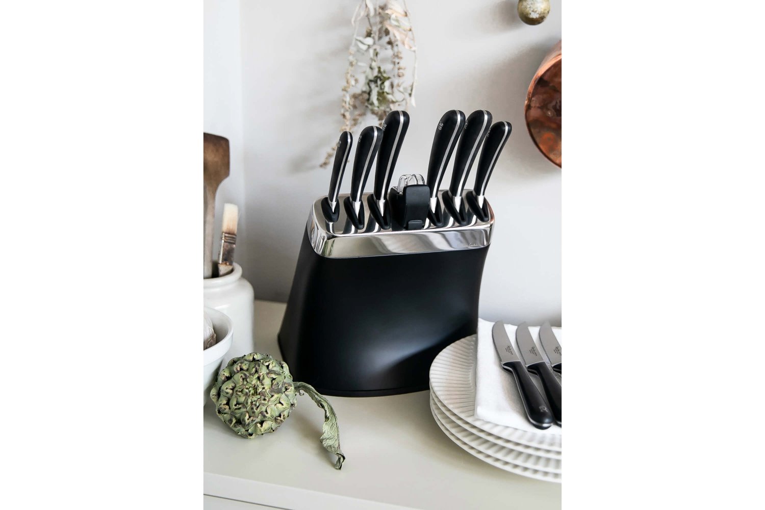 - Knivblock med inbyggd slip – Kombinerar förvaring och underhåll för alltid vassa knivar.