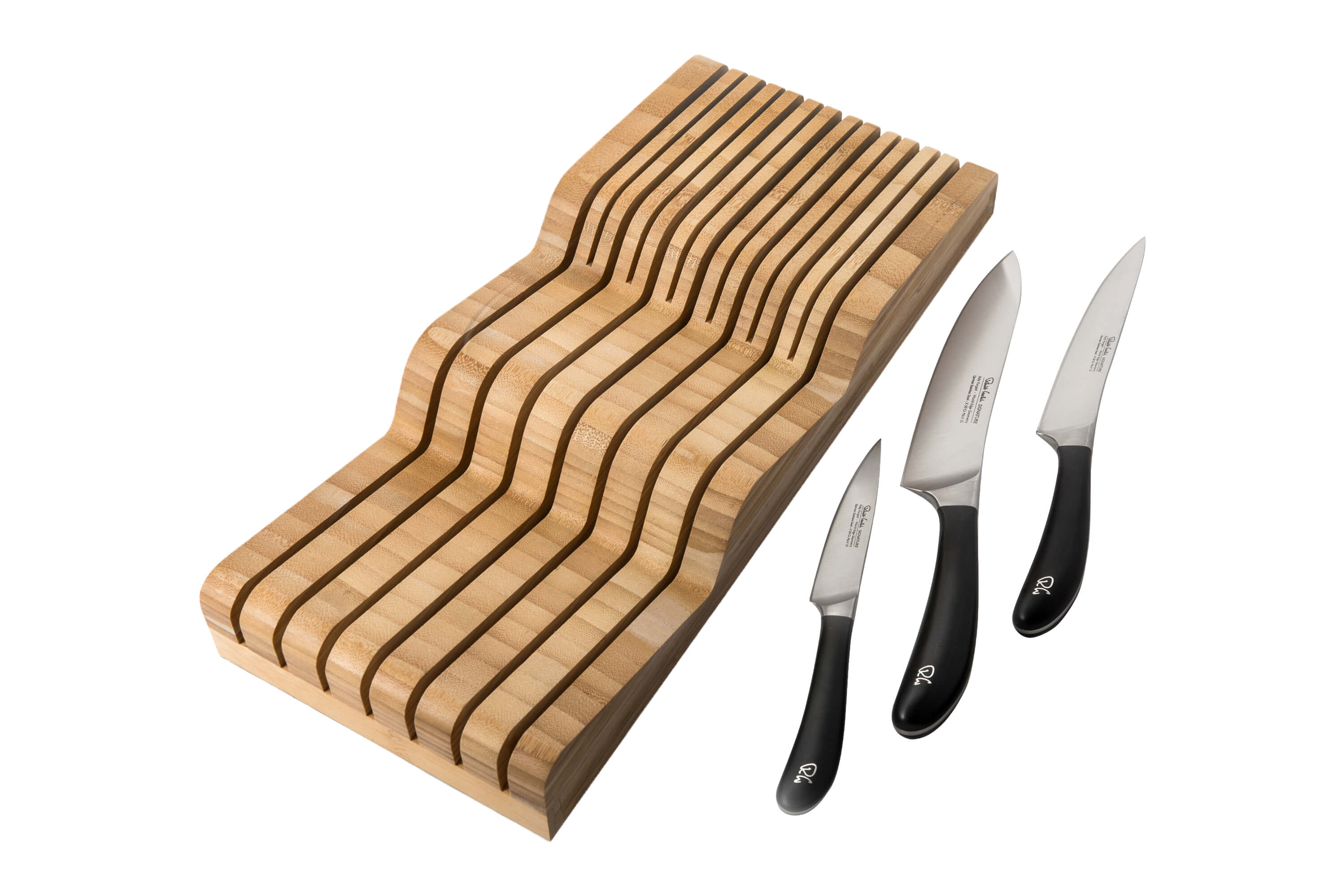 - Traditionella knivblock – Klassiska modeller i trä eller bambu med förskurna fack.
