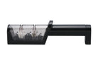 Med MIYABI knivslip med keramiska skivor är det lätt och extra bekvämt att skärpa knivblad. Slipvinkeln är redan fast så att du inte först behöver få knivbladet i rätt läge. För att skärpa knivbladet dras det först genom det diamantbelagda spåret. Det ger en skonsam grundslipning. I anslutning dras knivbladet flera gånger genom de keramiska skivorna. Det gör det vasst igen så att du utan problem kan finfördela kött, fisk och andra livsmedel igen. Knivslipen står stabilt på arbetsytan tack vare silikonnoppor på undersidan och kan inte halka vid användningen. Det ergonomiskt formade handtaget består av lättskött plast och är lika bekvämt att hantera för båda höger- och vänsterhänta. Med denna knivslip kan du inte bara slipa kvalitetsknivar från MIYABI. Den passar lika bra till knivblad av andra typer av stål, förutsatt att de inte har en tandad egg