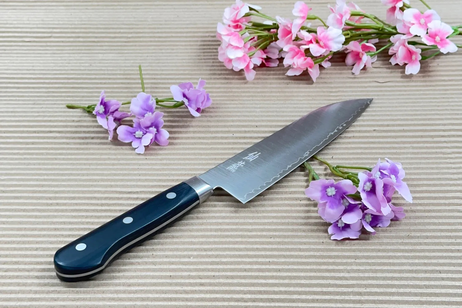 • Bladmaterial: Kärna av AUS10 stål, omgivet av lager av mjukare stål, smitt i en 3-lagers teknik (Warikome)