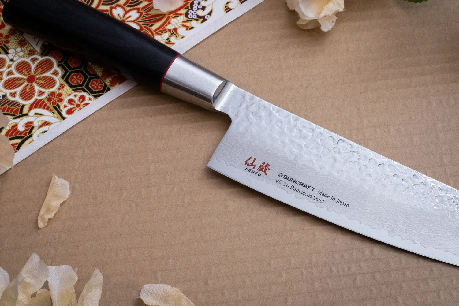 En santokukniv är en av de mest mångsidiga japanska köksknivarna, perfekt för både hemmakockar och proffs. "Santoku" betyder "tre uppgifter" på japanska, vilket syftar på knivens förmåga att skära, tärna och hacka med precision. Med sitt breda och välbalanserade blad är den ett utmärkt alternativ till den traditionella kockkniven (gyuto).