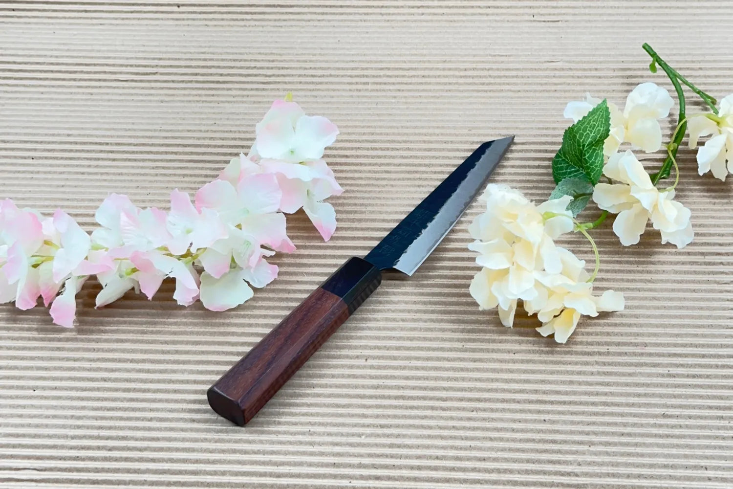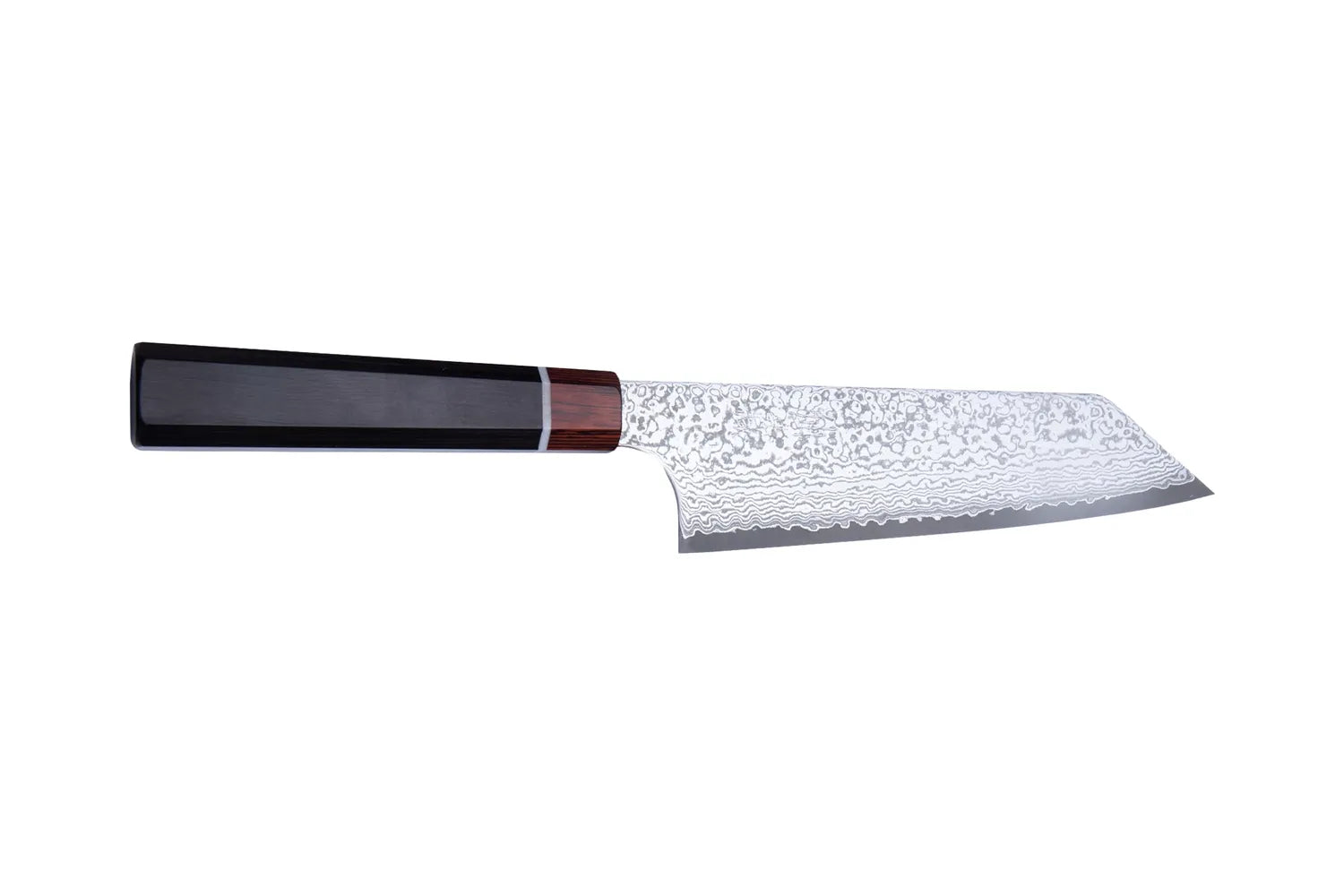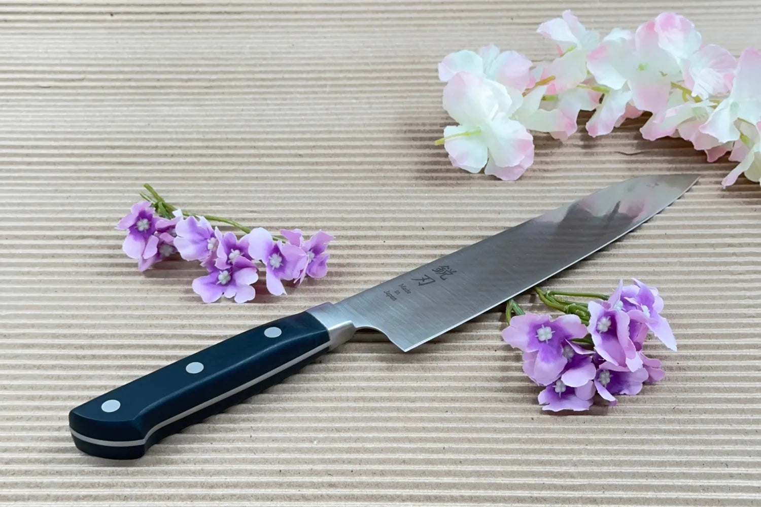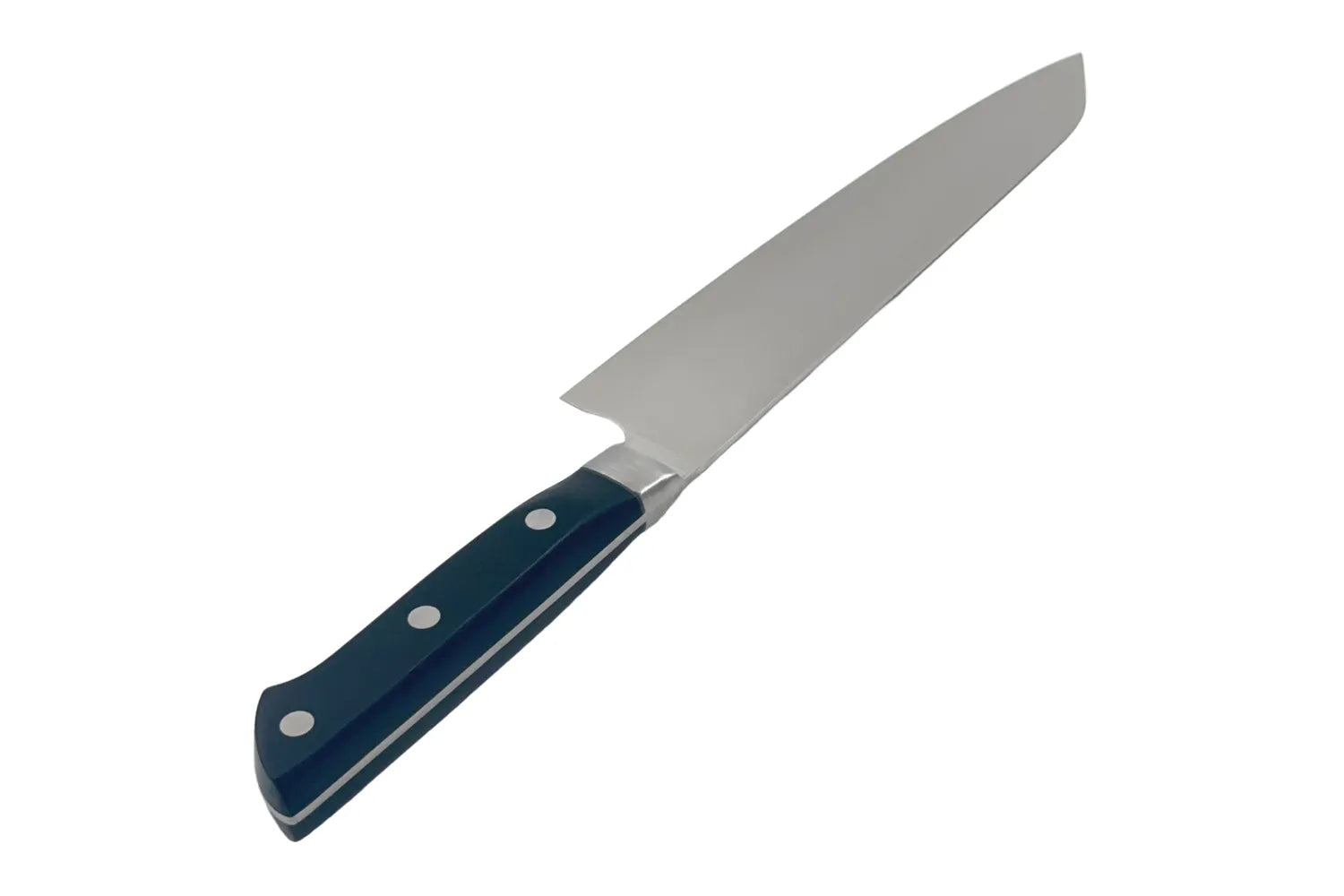 - Precision och kontroll – Den breda, något uppåtböjda spetsen gör det lätt att använda en rocking motion samt precicionsarbeten där en annan kockkniv (gyuto eller santoku) inte är lika smidig för att skapa exakta och jämna snitt.
