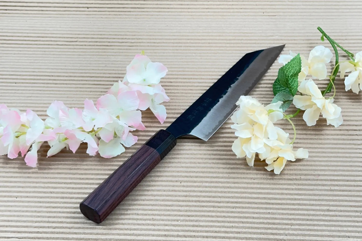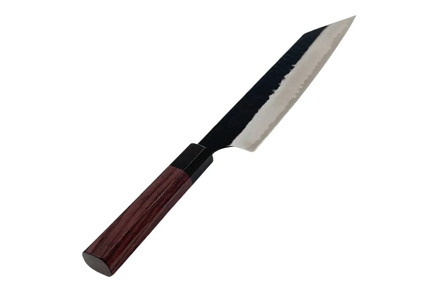Den Kurouchi-finishen på bladet ger kniven ett rustikt och autentiskt utseende samtidigt som den minskar friktionen under skärning. Denna traditionella japanska finish ger både estetisk charm och praktiska fördelar i köket.