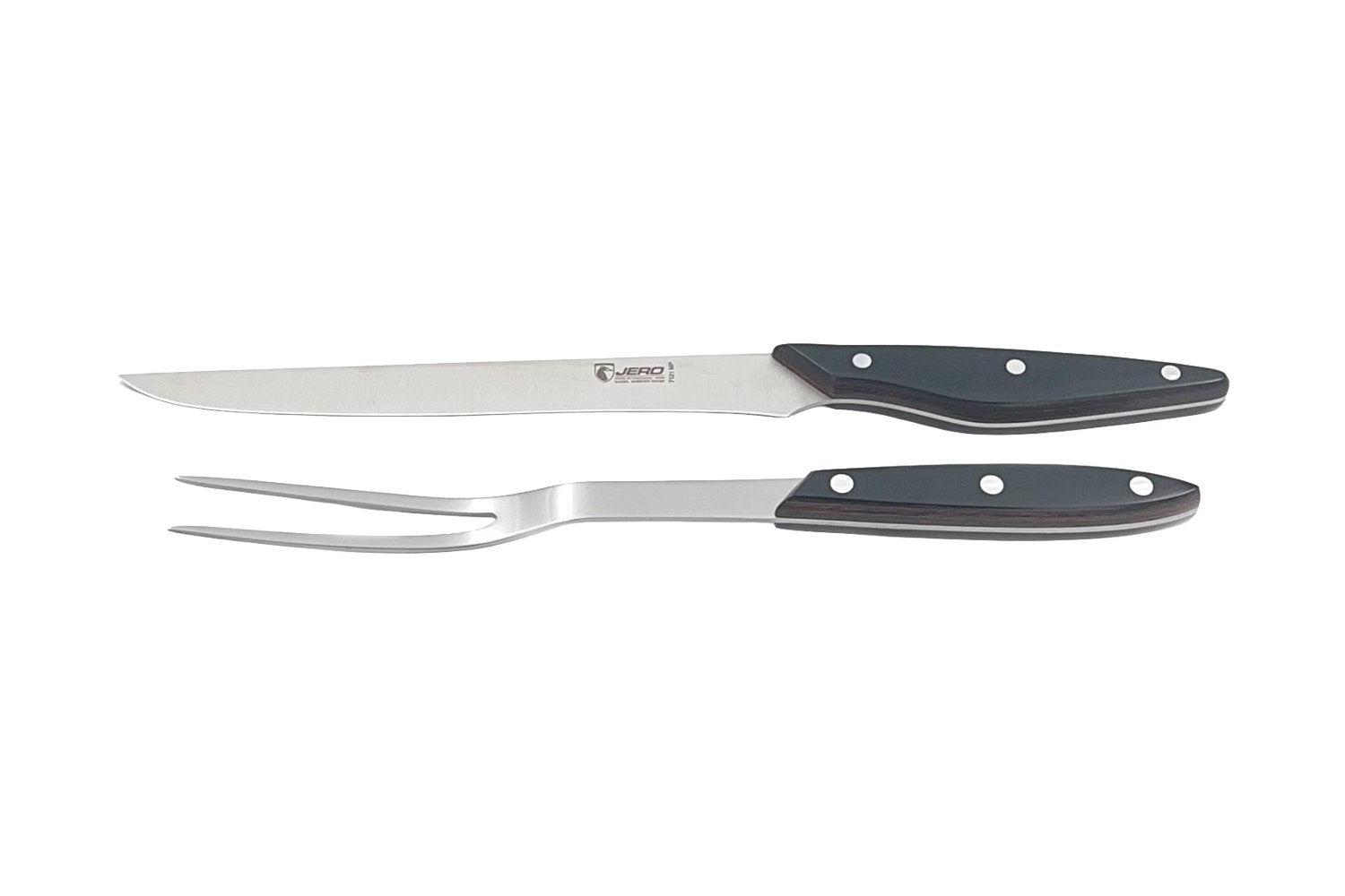 Med ergonomiskt designade handtag i trälaminat får du både komfort och hållbarhet, vilket gör det enkelt att hantera även de största köttstyckena utan att kompromissa med grepp eller precision. Handtagen är fuktbeständiga och tåliga, vilket säkerställer att setet behåller sin elegans och funktion även efter frekvent användning.