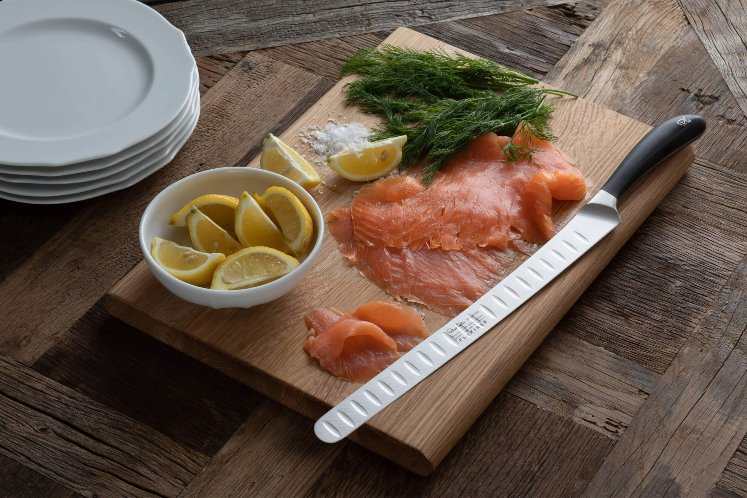 Robert Welch Flexible Trancherkniv Signature 30 cm är en professionell kökskniv designad för att skära tunna och jämna skivor av kött, fågel och fisk med precision och lätthet. Med ett flexibelt blad av tyskt rostfritt stål och ett ergonomiskt handtag från Dupont™, erbjuder denna trancherkniv exceptionell kontroll och hållbarhet, vilket gör den till ett oumbärligt verktyg för både hemmaköket och den professionella miljön.