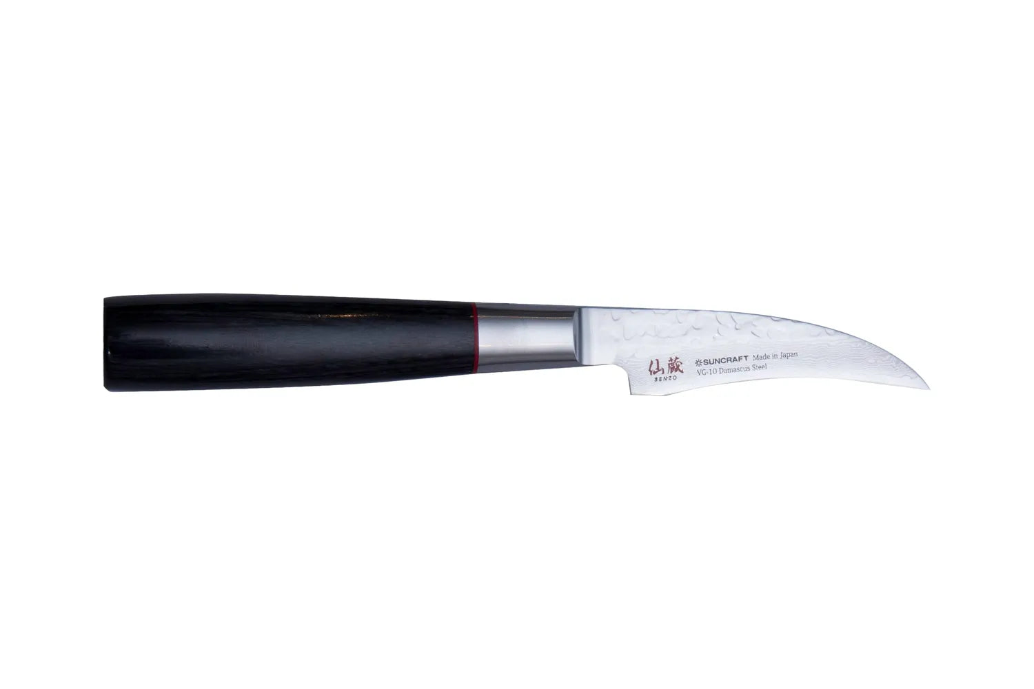 Bladet på Suncraft Senzo Petty 70mm skalkniv är tillverkat med en kärna av  VG10-stål, ett premiummaterial som är välkänt för sin höga prestanda och långvariga hållbarhet. Det är härdat till en hårdhet på 60-62 HRC (Rockwell Hardness Scale), vilket ger exceptionell skärpa och bibehållen egg även vid frekvent användning. Kärnstålet omges av 32 lager stål, smitt genom Damaskussmide, vilket inte bara ger bladet dess karakteristiska och eleganta mönster utan även ökar styrkan och flexibiliteten. Detta smide förstärker bladets hållbarhet och motståndskraft mot rost och korrosion, vilket gör den till ett pålitligt verktyg i köket.