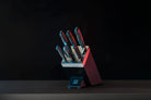 Det stilfulla knivblocket i elegant svart ton är en visuell höjdpunkt i varje kök, och det rostfria stålskyddet gör det extra slitstarkt. Setet levereras med högkvalitativa smidda knivar från VIER STERNE®-serien, kända i över 40 år för sin form, kvalitet och funktionalitet. I detta 7-delars block ingår: skal- och garneringskniv (10 cm), universalkniv (13 cm), köttkniv (20 cm), kockkniv (20 cm), brödkniv (20 cm) och en allroundsax från TWIN L – ett komplett och professionellt knivset för både hobbykockar och matentusiaster.
