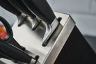 Hemligheten ligger i knivfacken: två keramiska brytstavar i perfekt slipvinkel sitter i facken för knivar med slätt blad, såsom skal- och garneringskniv, köttkniv och kockkniv. Varje gång du drar ut eller sätter tillbaka en VIER STERNE®-kniv slipas den automatiskt, vilket garanterar att den alltid är vass och redo att användas. För extra användarvänlighet visar tydliga piktogram vilket fack som passar vilken bladform, vilket ger en optimal översikt.