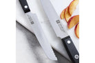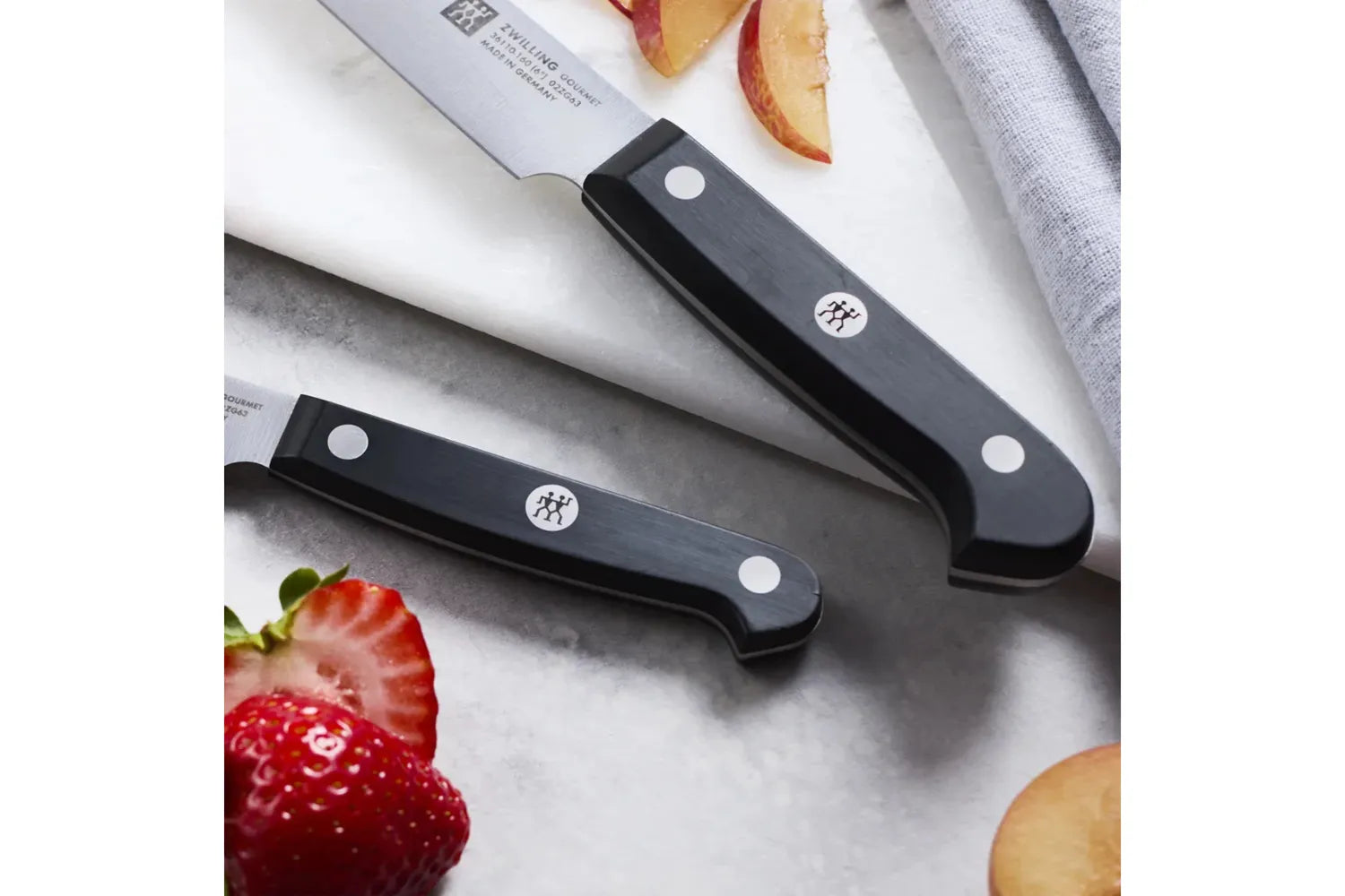Den premiumbestickpionjären ZWILLING J.A. Henckels har tillverkat anmärkningsvärda knivar sedan 1731. Företaget är en innovatör i branschen och håller sig tro mot sina rötter: ett starkt engagemang för kvalitet och excellens. ZWILLING Gourmet är den bästa kniven för hemmakockar som vill ha sin vardag vara exceptionellt. Den enstaka, precisionsstämda bladkonstruktionen är lättare än smidda knivar, vilket möjliggör maximal manövrerbarhet. Knivarna är tillverkade i Tyskland och är tillverkade i specialformelstål som har perfekterats i över 285 år. Kombinerat med ZWILLINGS signatur ishärdningsteknik är bladen hårdare, skarpare, de kommer inte att fläcka eller spånar och de behåller sin skärpa längre. Det ergonomiska, trippelnitshandtaget garanterar trötthetsfri skärning. Upplev komforten, hållbarheten och skärpan hos ZWILLING Gourmet.