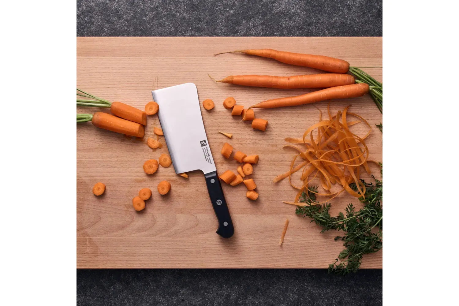 Det ergonomiska handtaget med sin klassiska trerivetsdesign och den lasergraverade ZWILLING-logotypen utgör en stilfull och professionell detalj i köket.