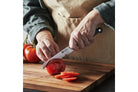 Zwilling verktygskniv 15.1 är mycket mångsidig tack vare sin mycket speciella, halvfina och högprecision, tandade kantblad. Denna verktygskniv från ZWILLING® Pro-serien med ett 13 cm långt blad skär bröd och rullar lika bra som kött eller ost. Med det räfflade bladet kan du också skickligt skära gurka och tomater i aptitretande kvarter. Denna mångsidiga kökskniv har en klassisk design och dess halksäkra ABS-plasthandtag passar perfekt i handen. Precisionsbladet smidd av rostfritt stål står i direkt kontrast till det svarta handtaget med en snygg nitad design. Denna högkvalitativa kniv serverar ambitiösa amatörkockar bra när du förbereder fina livsmedel, allt tack vare det speciella ishärdade bladet och dess optimala geometri. Tack vare det räfflade bladets speciella geometri förblir Zwillings knivs förmåga att skära på lång sikt. Stödet mellan blad och handtag stöder det perfekta greppet på kniven, vilket gör att bladet alltid kan placeras korrekt och underlättar skärningen. Den perfekt balanserade verktygskniv 15.1 från ZWILLING® Pro-serien med ett integrerat handskydd är också till hjälp i vardagen. Som ett resultat känner även amatörkockar sig snabbt med den här praktiska kniven. Med denna verktygskniv kan du bli din egen köksmästare - den här effektiva hjälpen garanterar alltid att all matlagning som utförs i köket blir en framgång.