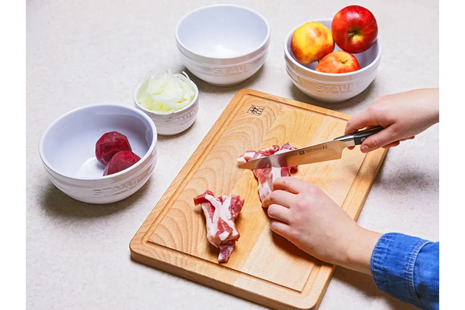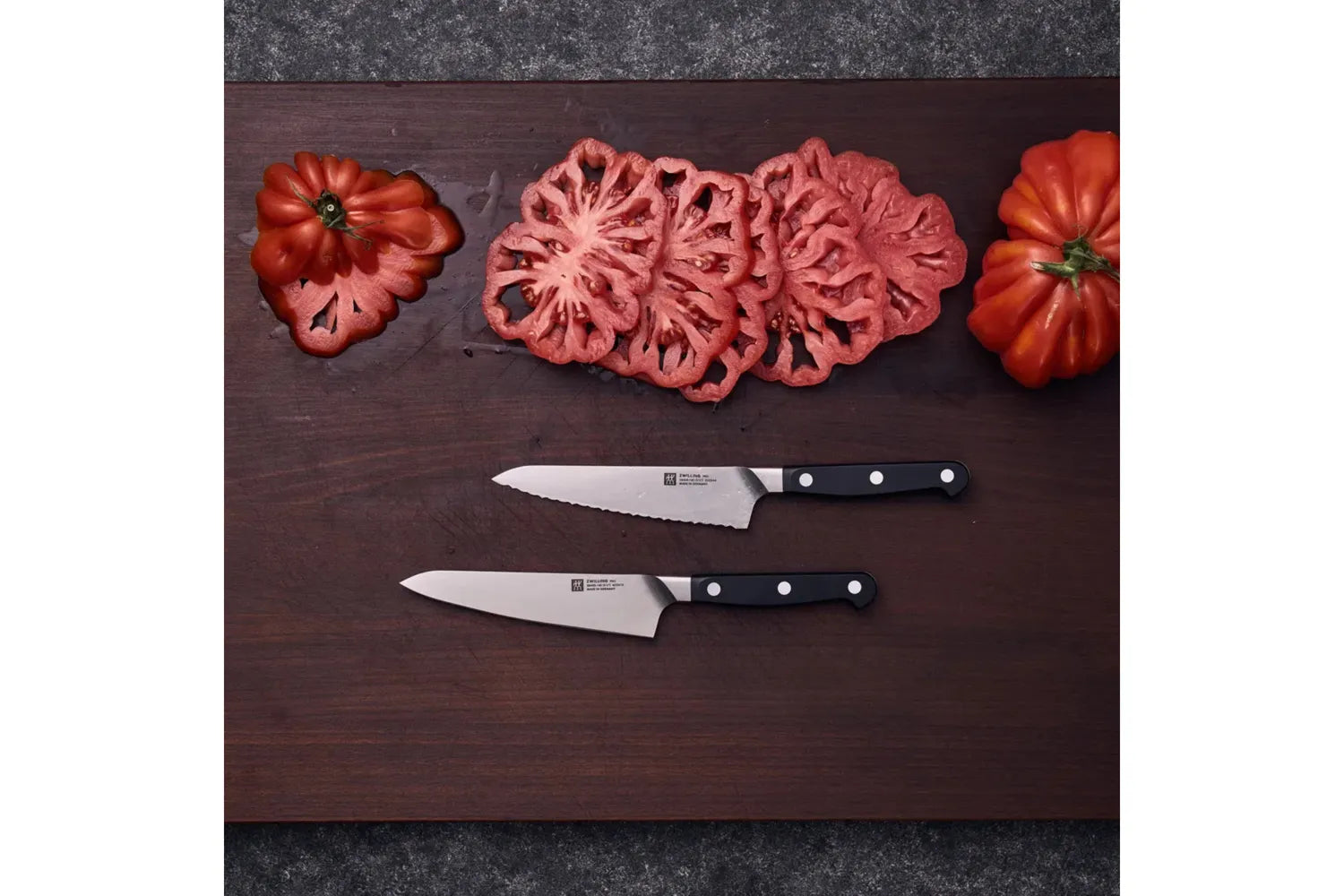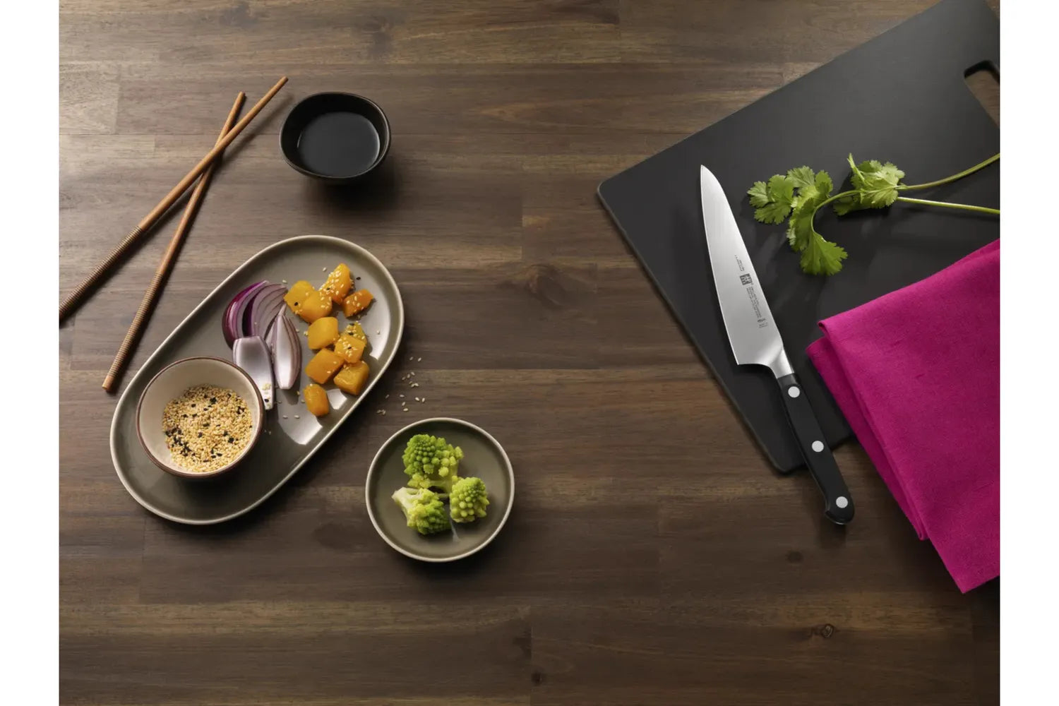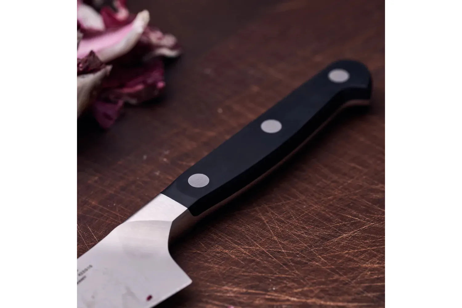 Den kompakta kockkniven från ZWILLING® Pro-serien är en praktisk allroundare för att möta de högsta kraven. Kniven är en del av en serie som kombinerar innovativ teknik och ett traditionellt utseende. Den välkända Milan-designern Matteo Thun utsågs återigen för att förpacka knivens höga kvalitetsnivå i en tilltalande design. Resultatet: en äkta klassiker i en tidlös tre-nit-design med en kontinuerlig tang som kan möta alla professionella krav på matlagning. Den kompakta kockkniven fyller ett mellanrum mellan de stora och små skärverktygen och är därför en multitalent för ett brett utbud av köksuppgifter. Med en mått på 14 cm är kockens kniv tillräckligt lång för att den kan användas som en traditionell kockkniv för att förbereda örter. Samtidigt är det så kort och lätt att du enkelt kan rengöra och hacka grönsaker med det. Den kompakta nykomlingen har alla de kvaliteter du förväntar dig av ZWILLING. Tillverkad av stål och precisionssmidd i ett stycke, den Compact kockkniven har en exakt kant och de bästa skäregenskaperna. Du kan till och med skära de finaste skivorna av lök på ett säkert och exakt sätt samt hacka örter snabbt och enkelt. Styrkan som leder från handtaget till bladet kommer inte i vägen så att du enkelt och enkelt kan arbeta längre.