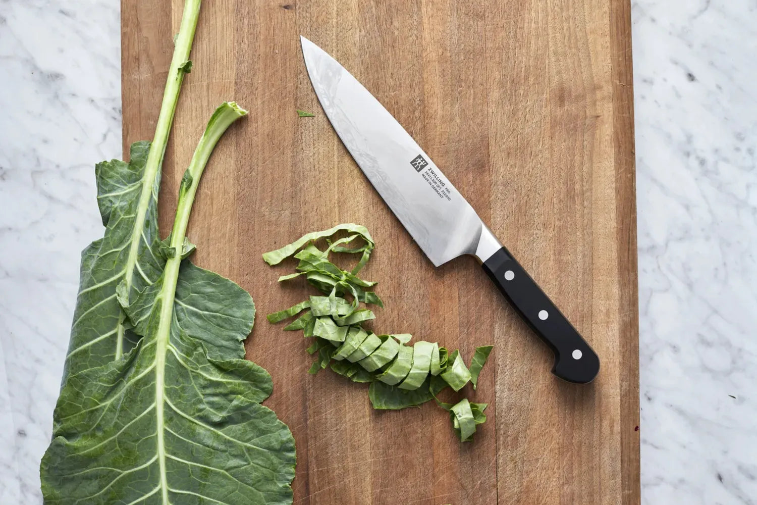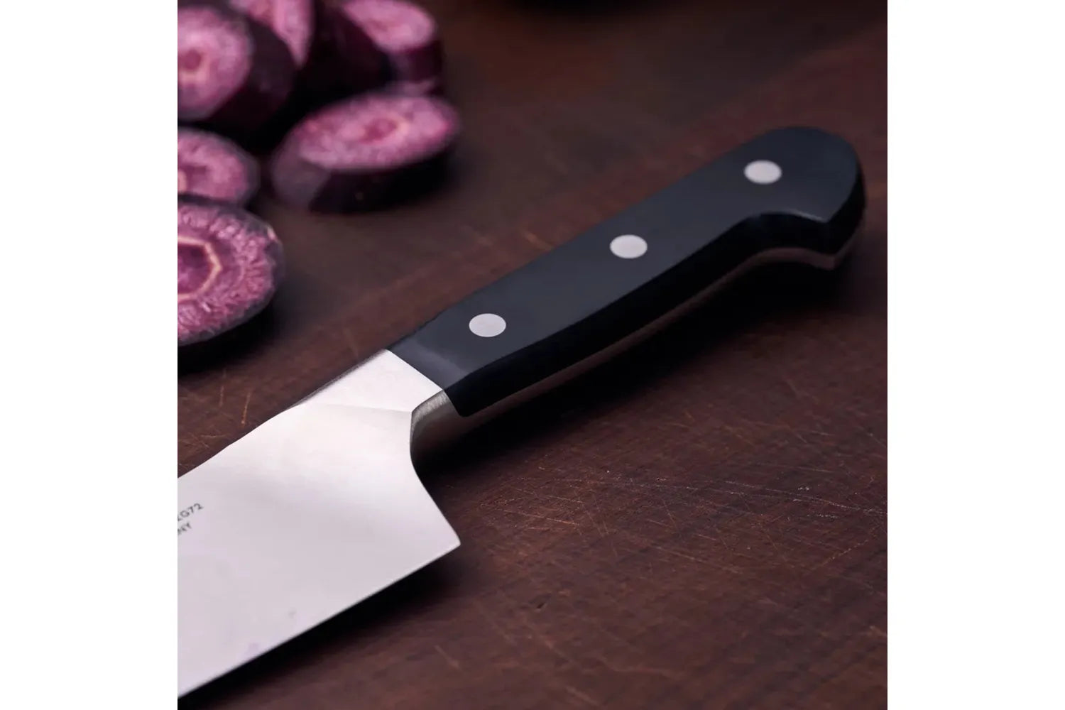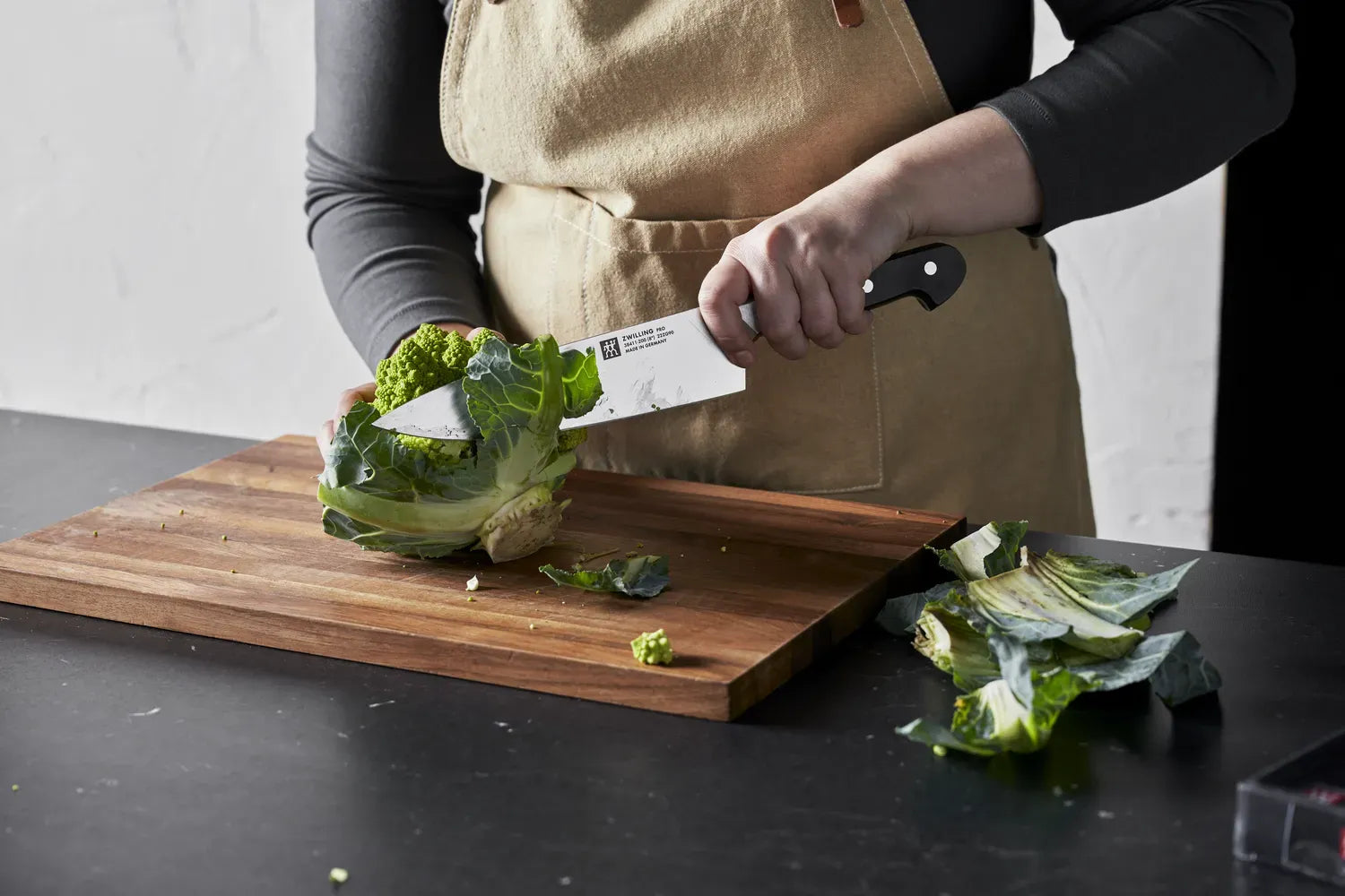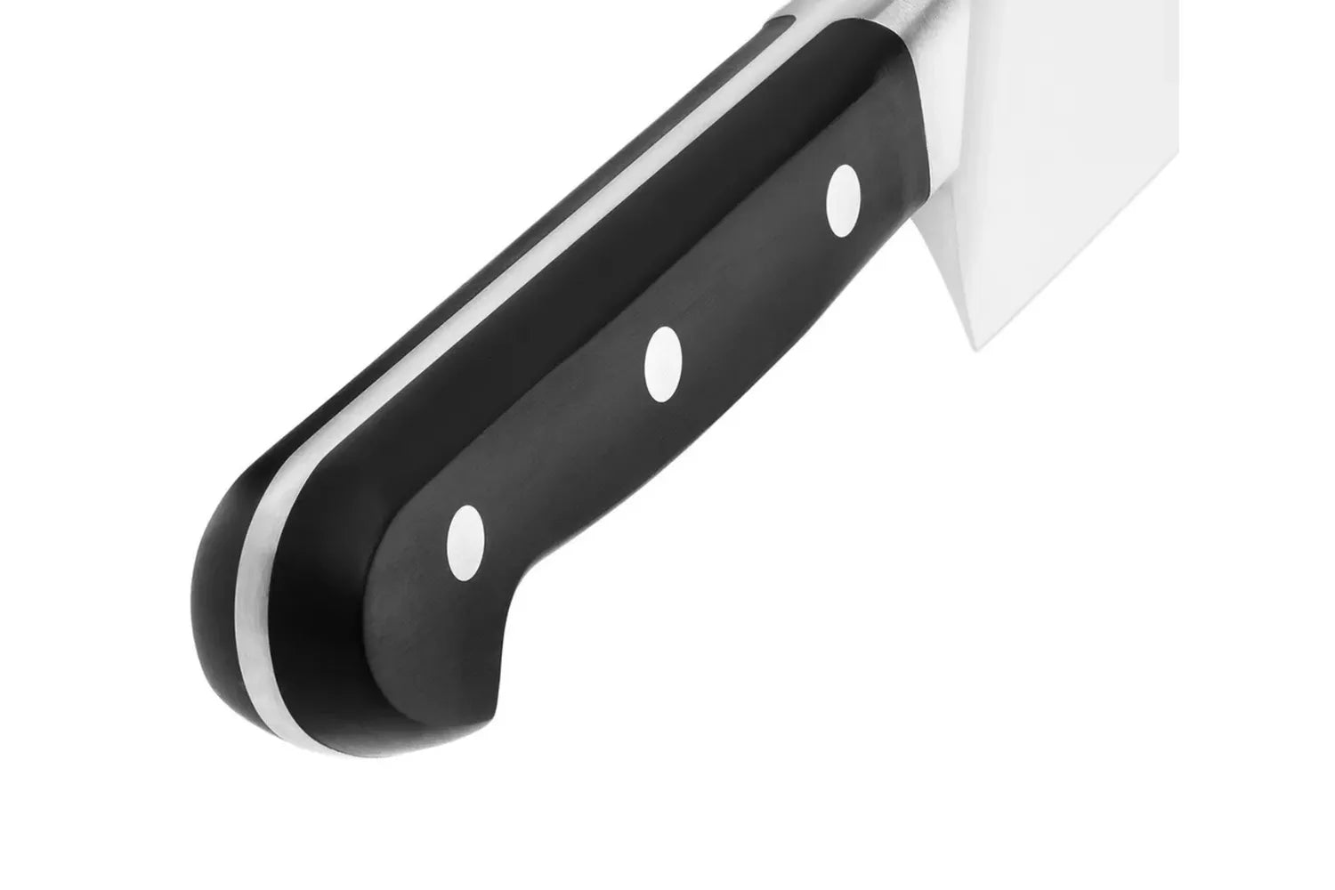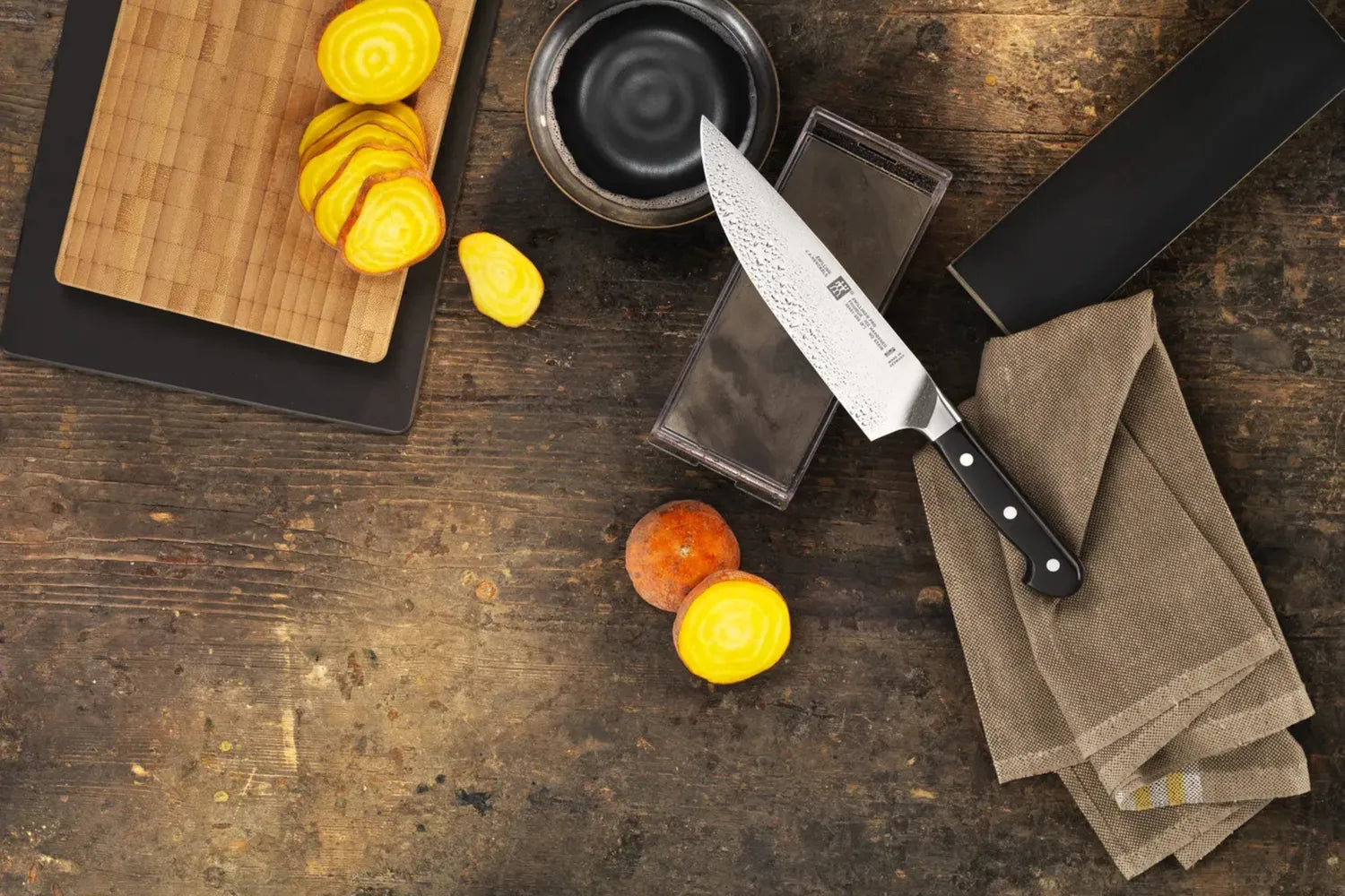 ZWILLING kockknivar förenar hantverk av hög kvalitet och innovativ design med material av hög kvalitet. Det ergonomiska handtaget på denna ZWILLING® Pro kockkniv är bekväm att hålla och bidrog till den imponerande funktionen hos denna traditionella 20 cm kniv. Kniven är smidd av ett enda stålstycke, dess FRIODUR®-blad härdad med en speciellt utvecklad ishärdningsprocess, som också ger kniven dess exceptionella robusthet och skärpa. Sömlöst flytande ytor förhindrar att bakterier samlas, vilket gör kniven ren och hygienisk att använda. Denna ZWILLING® Pro kockkniv gör det enkelt att få ett korrekt snitt.