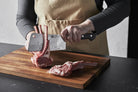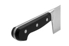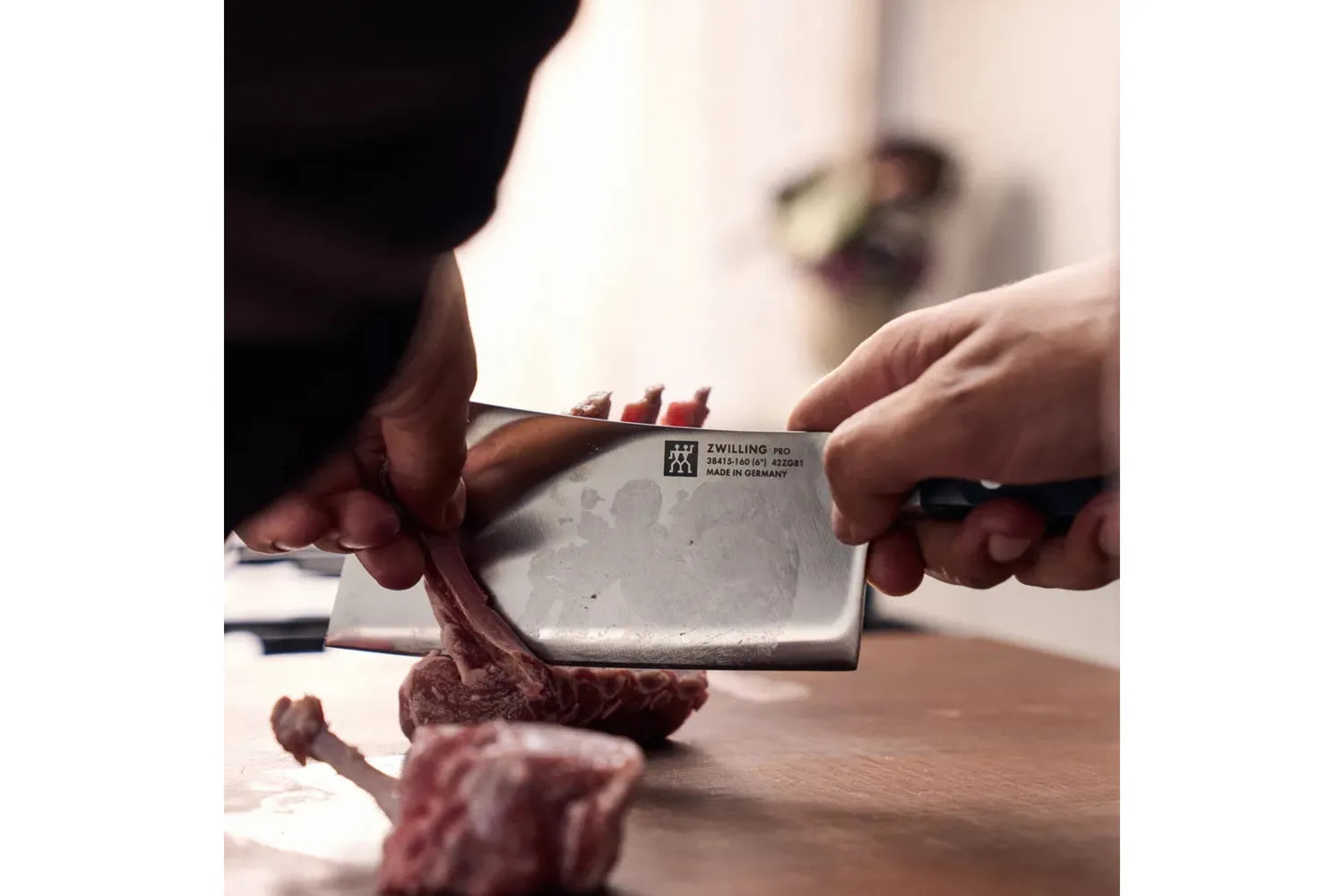 Denna klyver från ZWILLING® Pro-serien är enastående för att hugga stora köttstycken och skära fläskribbor och har också ett stabilt och brett rektangulärt blad. Sammantaget har kliven en längd på 16 cm. Serien kännetecknas av "Made in Germany" kvalitet. Innovativ teknik, ett traditionellt utseende och precision är det som skiljer denna cleaver. Stålet som används för det och förhållandet mellan krom och kol bidrar framför allt till den höga kvaliteten på spaltaren. Kniven FRIODUR® är av högsta kvalitet, eftersom specifik ishärdning används för att optimera dess skäregenskaper. Eftersom bladet är precisionssmidd från ett enda stålstycke, kan denna SIGMAFORGE®-kniv inte misslyckas med att imponera användare med sin perfekta geometri. Detta utgör grunden för en exakt skärning och utmärkta skäregenskaper. Den unika kilformade bladgeometrin ger optimal stabilitet och en lätt och enkel skärverkan. Kniven kan styras på ett säkert sätt på grund av den böjda formen på stödet. Samtidigt stoppar bolstret att fingrarna glider från handtaget till bladet. Den 3-nit-designen med sin kontinuerliga tang ger en utmärkt balans. Den kontinuerliga klippkanten på spjället innebär att den skär sig ända upp till skruven. Denna ZWILLING-kniv ger ett skärredskap som kombinerar japansk och europeisk skärkultur.