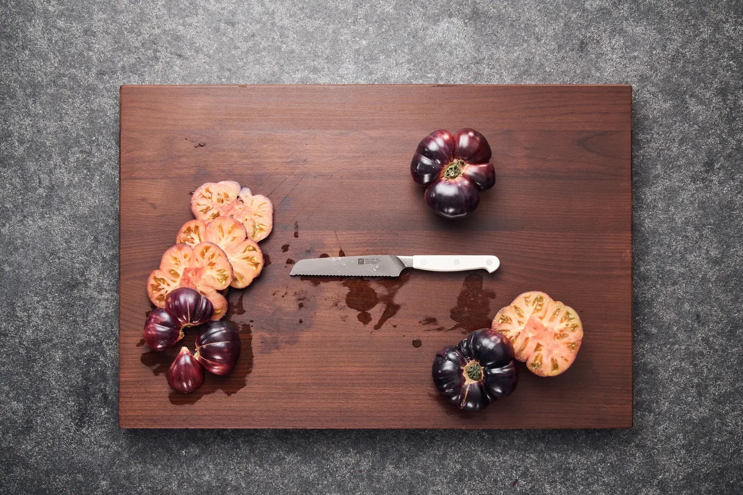 Klipp målmedvetet – och med stil. Med universalkniven i den populära serien ZWILLING PRO. Kniven har ett elegant mattvitt handtag i legendarisk design med tre nitar och är designad av Matteo Thun och Antonio Rodriguez. Och är ergonomiskt utformad: Kniven ligger behagligt i handen, och det böjda bolstret gör att du automatiskt väljer rätt grepp. Kniven har ett ishärdat FRIODUR-blad med vågslipning: vasst, robust, korrosionsbeständigt. Den perfekta kniven för att effektivt och enkelt skära i livsmedel med hård skorpa eller skal.