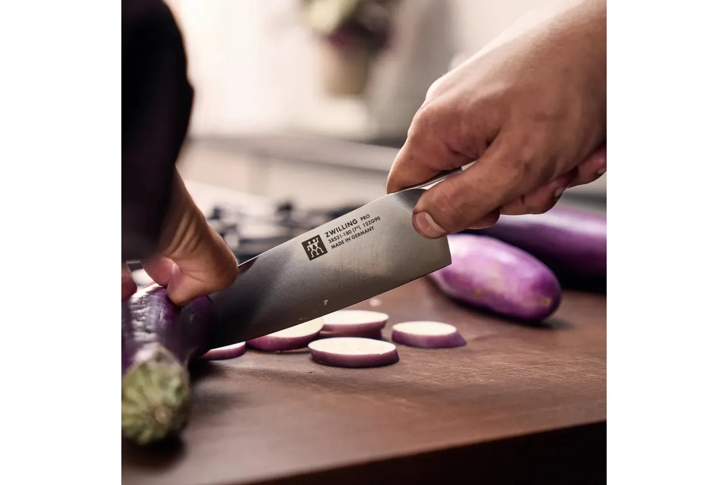 Kockkniven från ZWILLING Pro Le Blanc-serien kombinerar alla de funktioner som ambitiösa kockar förväntar sig av knivar i världsklass; kompromisslös kvalitet, design och skärpa. Med denna kniv kan du skära allt från grönsaker till kött. Med sitt 18 cm långa blad är denna optimal för dig som tycker vår kockkniv på 20 cm är onödigt lång. Kniven har designats i Milano av designduon Matteo Thun och Antonio Rodriguez och tillverkats i Tyskland av vår ZWILLING specialstål.