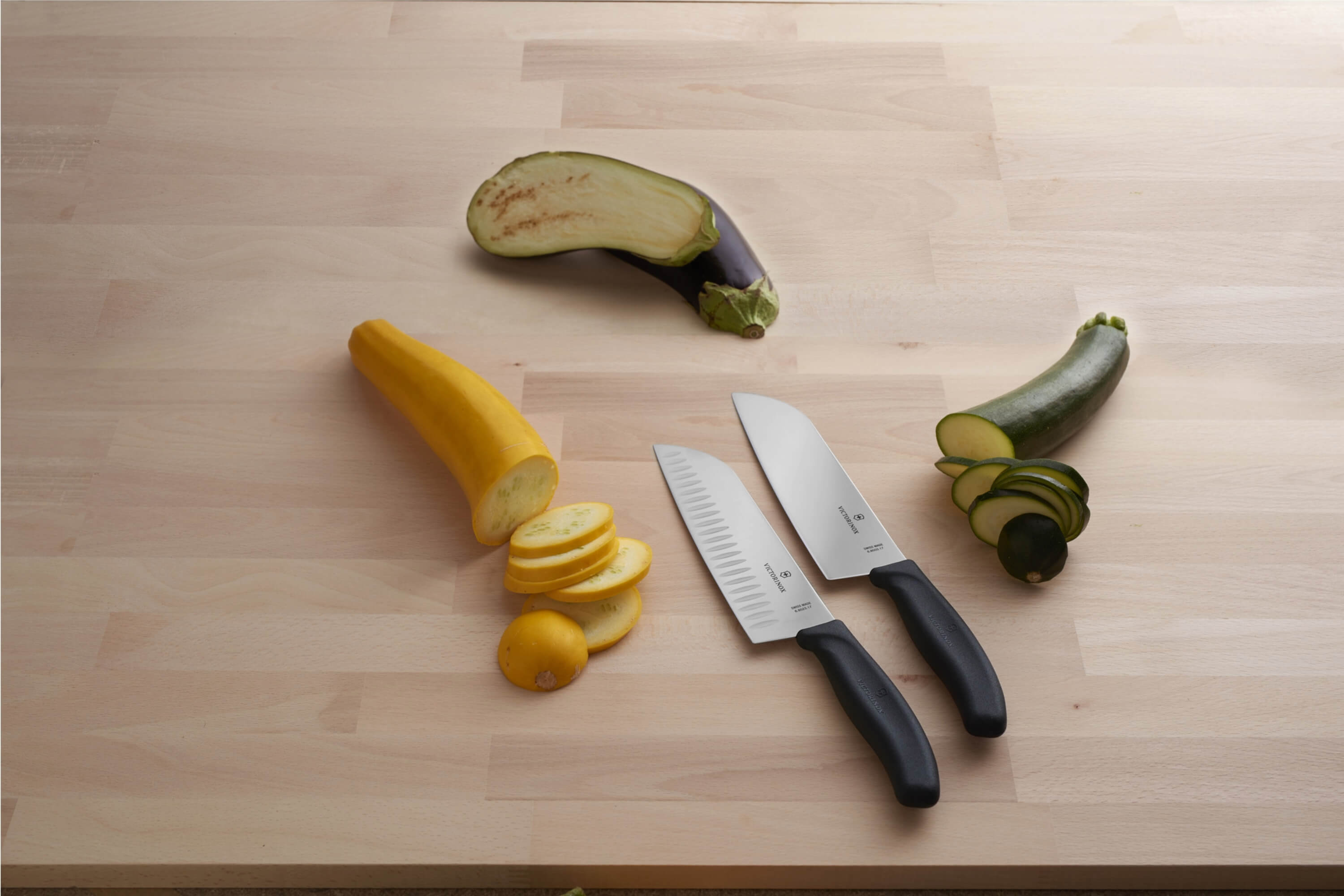 - Grönsakskniv (Nakiri eller Usuba) – Perfekt för att skära, hacka och tärna grönsaker.