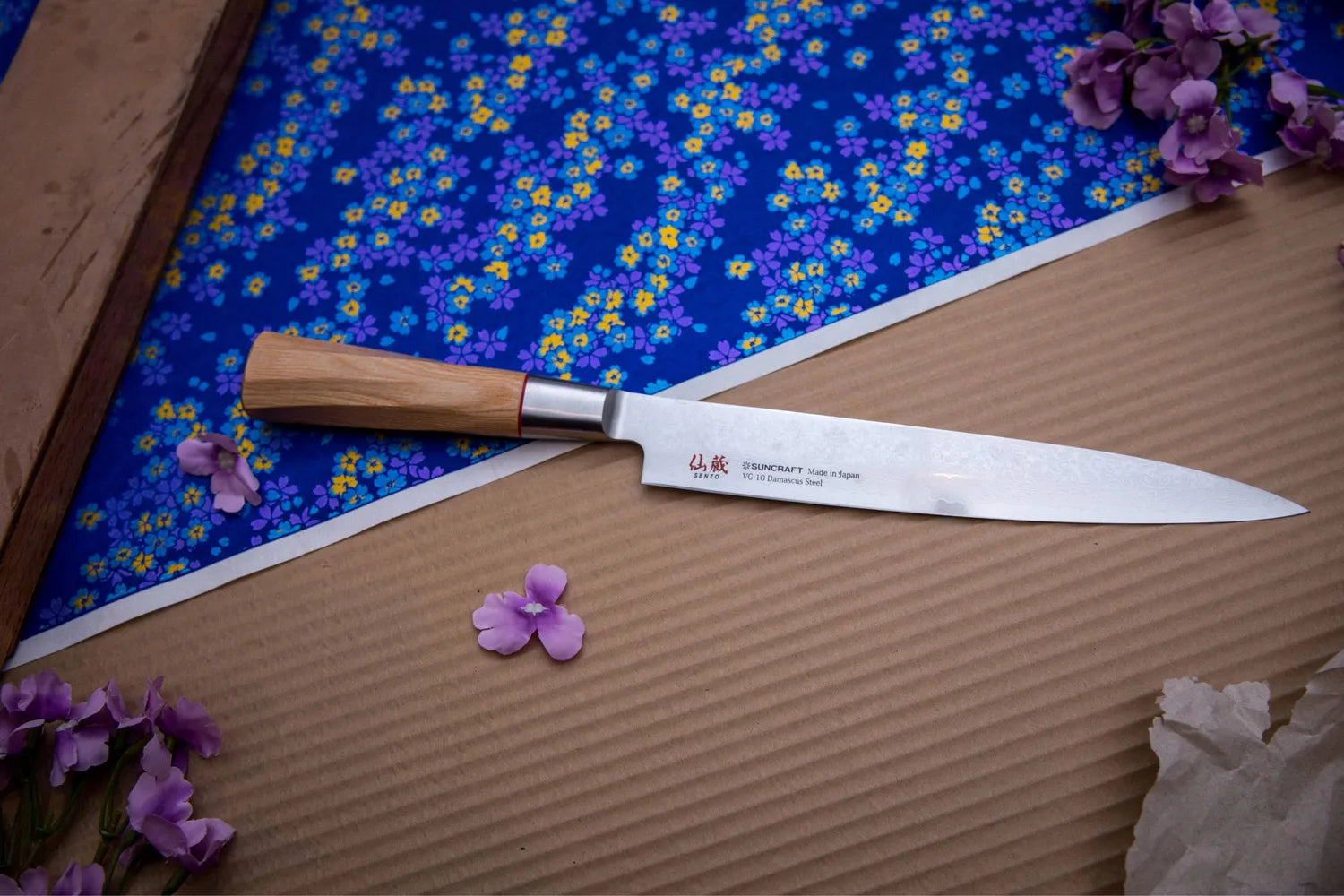 - Kockkniv (Gyuto, Santoku, Bunka) – En mångsidig kniv perfekt för att skära kött, hacka grönsaker och utföra precisionsarbete.