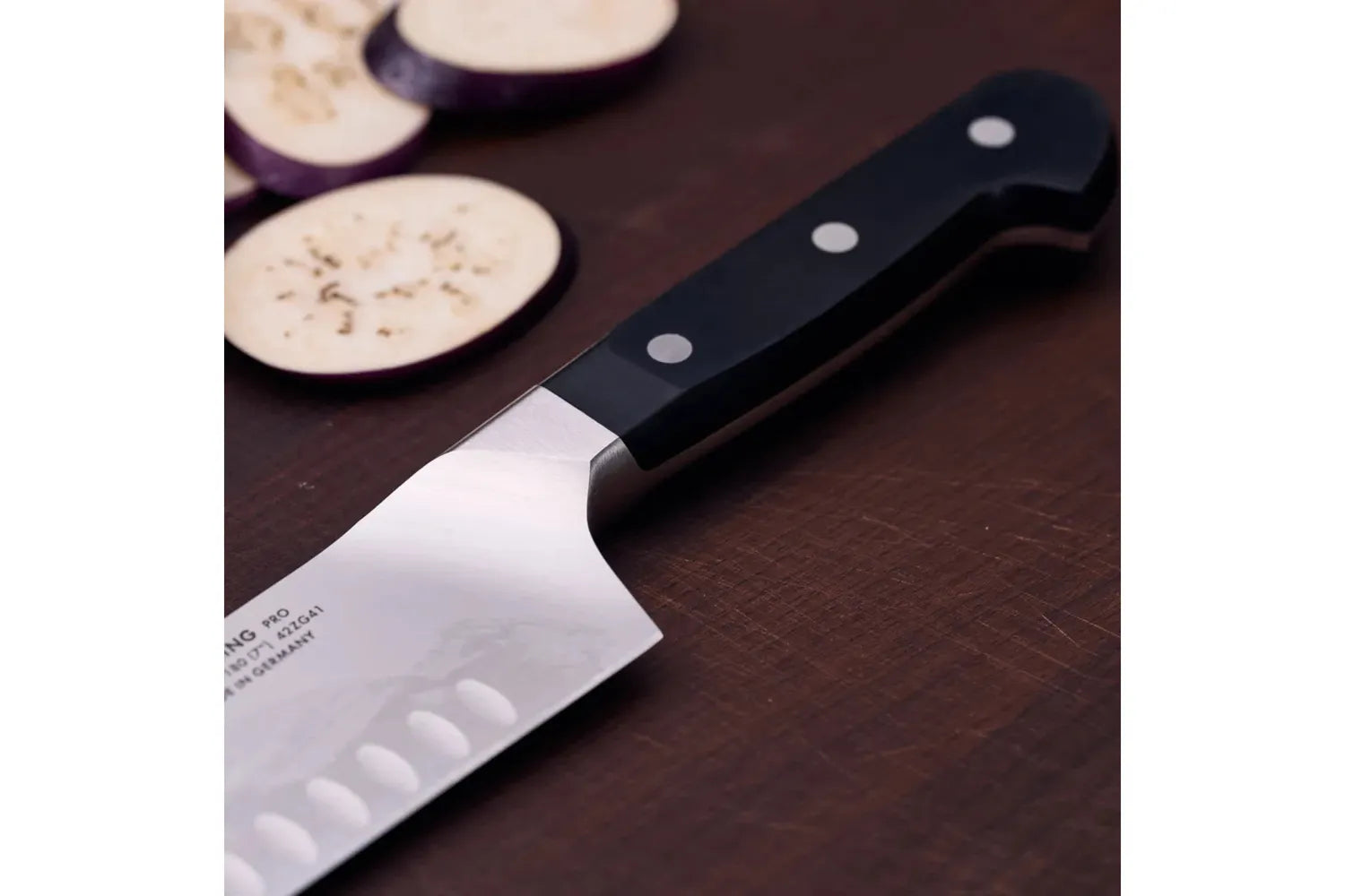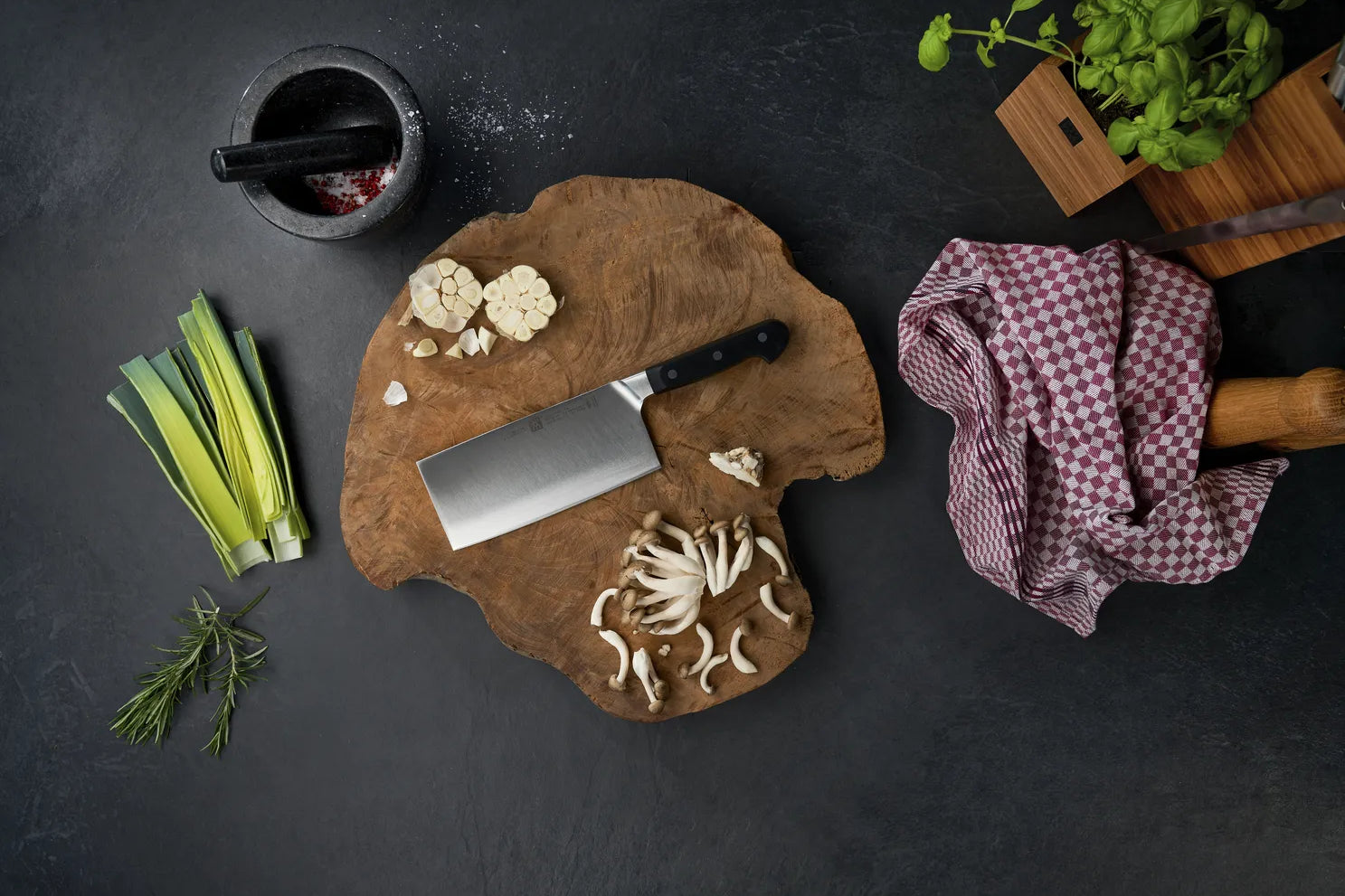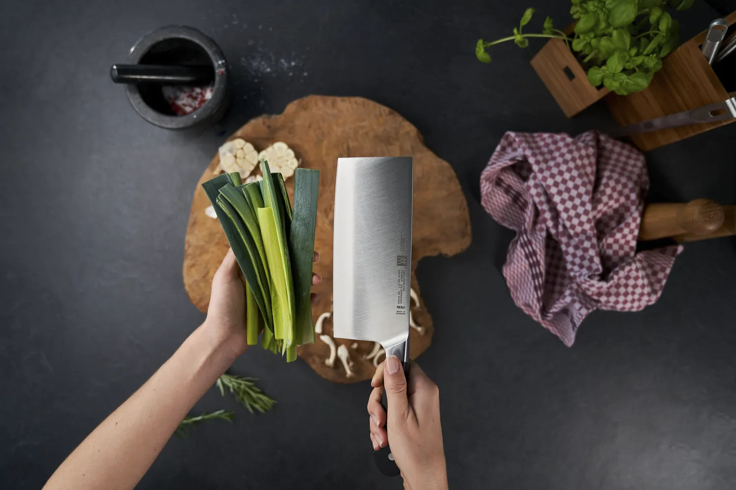 - Grönsakskniv (Nakiri eller Usuba) – Perfekt för att skära, hacka och tärna grönsaker.