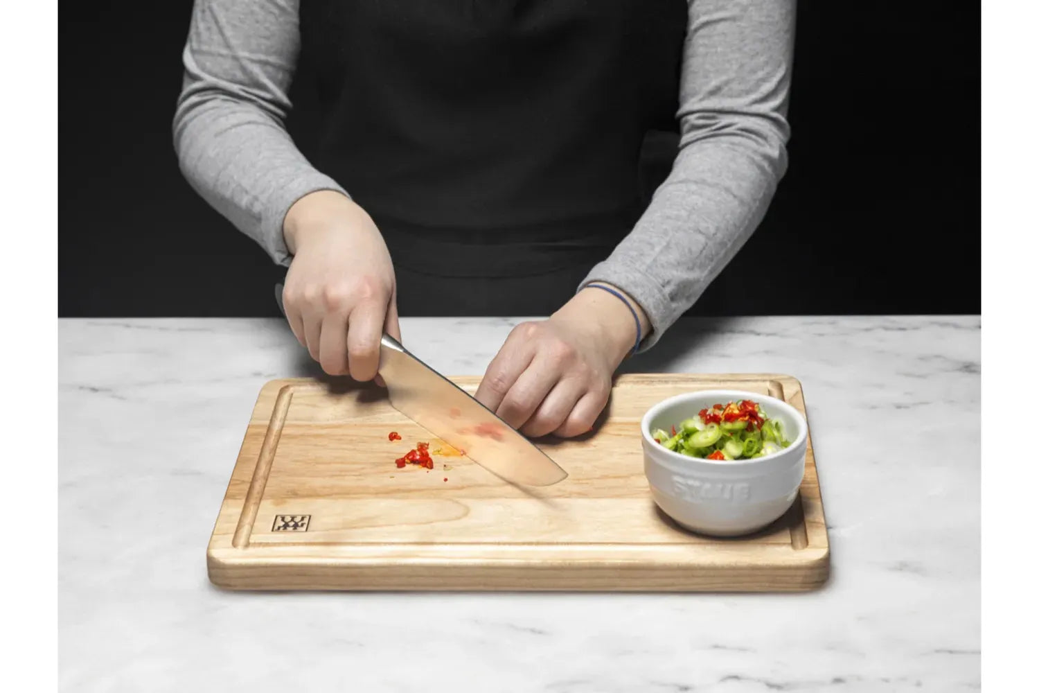 - Använd rätt skärbräda – Skärbrädor i trä eller plast är skonsammare mot knivens egg än glas eller sten.