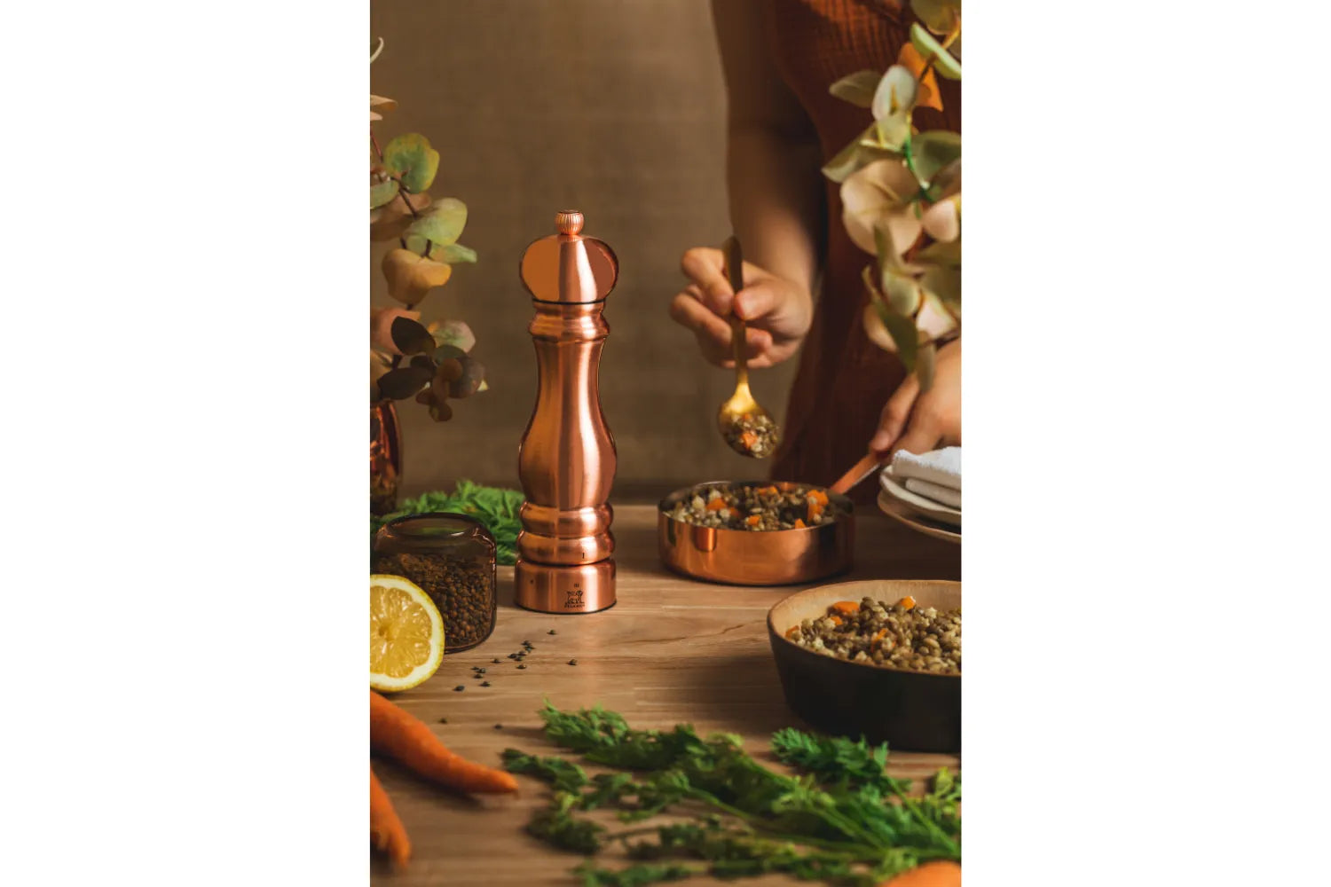 Peugeot Paris Chef u'Select Saltkvarn 22 cm Koppar är framtagen för krävande hemmakockar och professionella kök. Den ikoniska Paris-formen kombineras här med en robust konstruktion där en inre kärna av PEFC™-certifierat trä ger stabilitet, medan utsidan är pläterad med rostfritt stål i elegant kopparfinish för maximal slitstyrka och ett exklusivt uttryck.