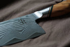 Bladet är tillverkat av 73 lager högkolhaltigt damaskusstål med ST650 pulverstål i kärnan, vilket ger en hårdhet på 63 HRC. Detta säkerställer långvarig skärpa och slitstyrka, perfekt för både fina snitt och tunga uppgifter i köket.