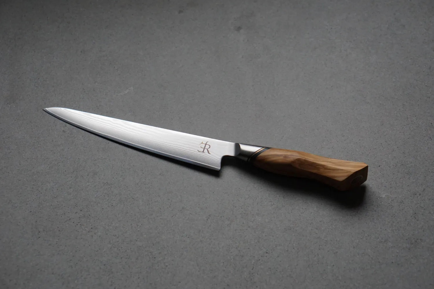 Ryda Knives A-73 Trancherkniv 20,5 cm är skapad för att ge maximal precision vid skivning av kött, fågel och fisk. Med sin smala profil och lätta vikt på 162 g glider kniven lätt genom råvarorna, medan det handgjorda olivträhandtaget ger komfort och en naturlig känsla i handen. Perfekt för professionella kockar och matlagningsentusiaster som vill ha full kontroll vid varje skiva.