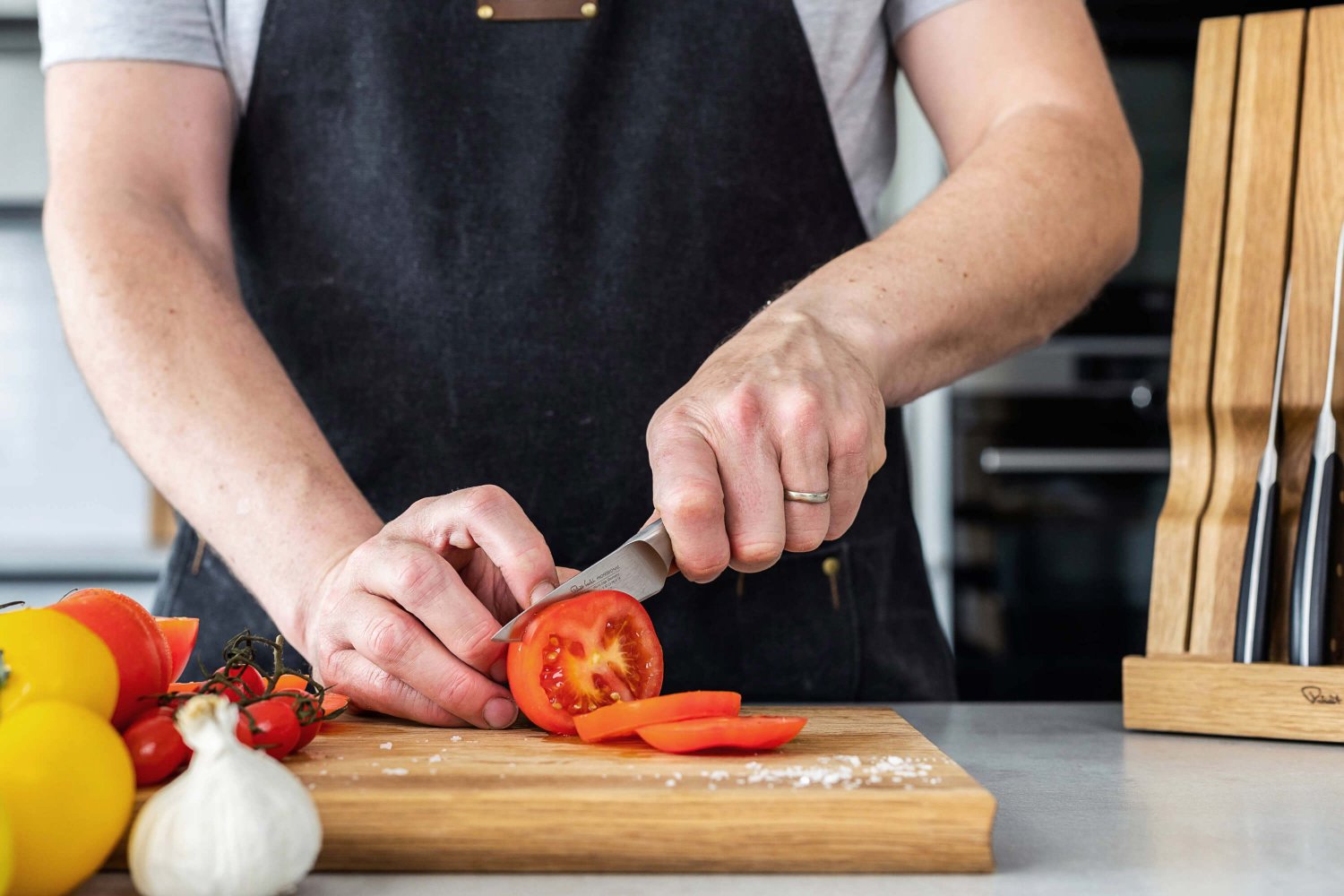 Tack vare sin mångsidighet och sin smidiga storlek är skalkniven ett omtyckt verktyg i köket för de mindre uppgifterna: