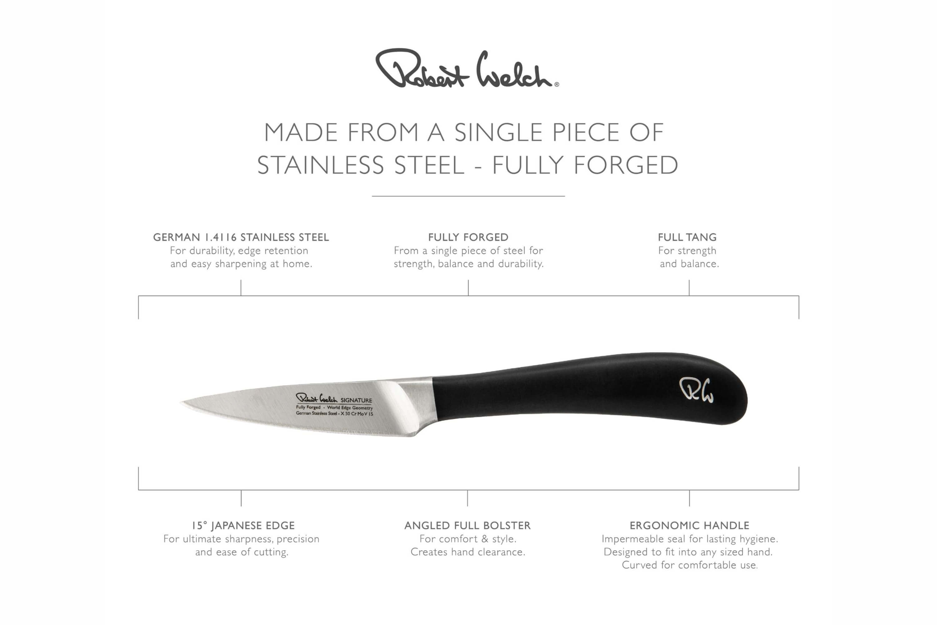 En skalkniv är en av de mest användbara och mångsidiga köksknivarna, perfekt för precision och kontroll vid matlagning. Med sitt lilla, skarpa blad gör den det enkelt att skala, skära och dekorera frukt och grönsaker med hög noggrannhet där en vanlig kockkniv kan uppfattas som klumpig.