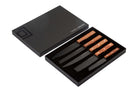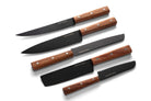- Exklusiv Design: Knivarna har svarta knivblad som ger dem en modern och elegant look. Handtagen är tillverkade av mörkt rosenträ, vilket ger en exklusiv känsla och bra grepp.