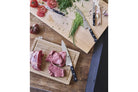 Bambu är ett naturligt elastiskt material som är skonsamt mot knivarnas blad, vilket gör att de behåller sin skärpa längre. Den praktiska rännan längs kanten samlar upp köttsaft och vätska, vilket gör det enklare att hålla arbetsytan ren vid exempelvis tranchering eller styckning.