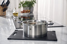 Upptäck en oumbärlig kökspryl: skärbrädan från ZWILLING. Med den moderna designen av det eleganta trälaminatet tillför denna skärbräda stil och funktionalitet till ditt kök. Tack vare den extra tunna designen är den lätt att hantera och platsbesparande. Skärbrädan är skonsam mot dina knivar eftersom det blir små snitt i ytan vid skärning. Den är robust och värmetålig för att klara även de tuffaste uppgifterna. Det praktiska saftspåret på ena sidan förhindrar att vätskor rinner över och håller brädan ren vid skärning. Dessutom tål brädan maskindisk och är lätt att rengöra. De halkfria silikonfötterna ger ett ordentligt fäste på alla ytor så att skärbrädan alltid ligger stadigt.