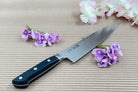 Surudoi Kockkniv Pro House Gyuto 210mm är en förstklassig japansk kniv som erbjuder en perfekt balans mellan skärpa, hållbarhet och ergonomi. Med sin mångsidiga bladlängd på 210 mm är denna Gyuto-kniv idealisk för en rad köksuppgifter, från att skära kött och fisk till att hacka grönsaker och örter. Den är ett oumbärligt verktyg för både professionella kockar och matlagningentusiaster som söker en kniv med hög prestanda och precision.