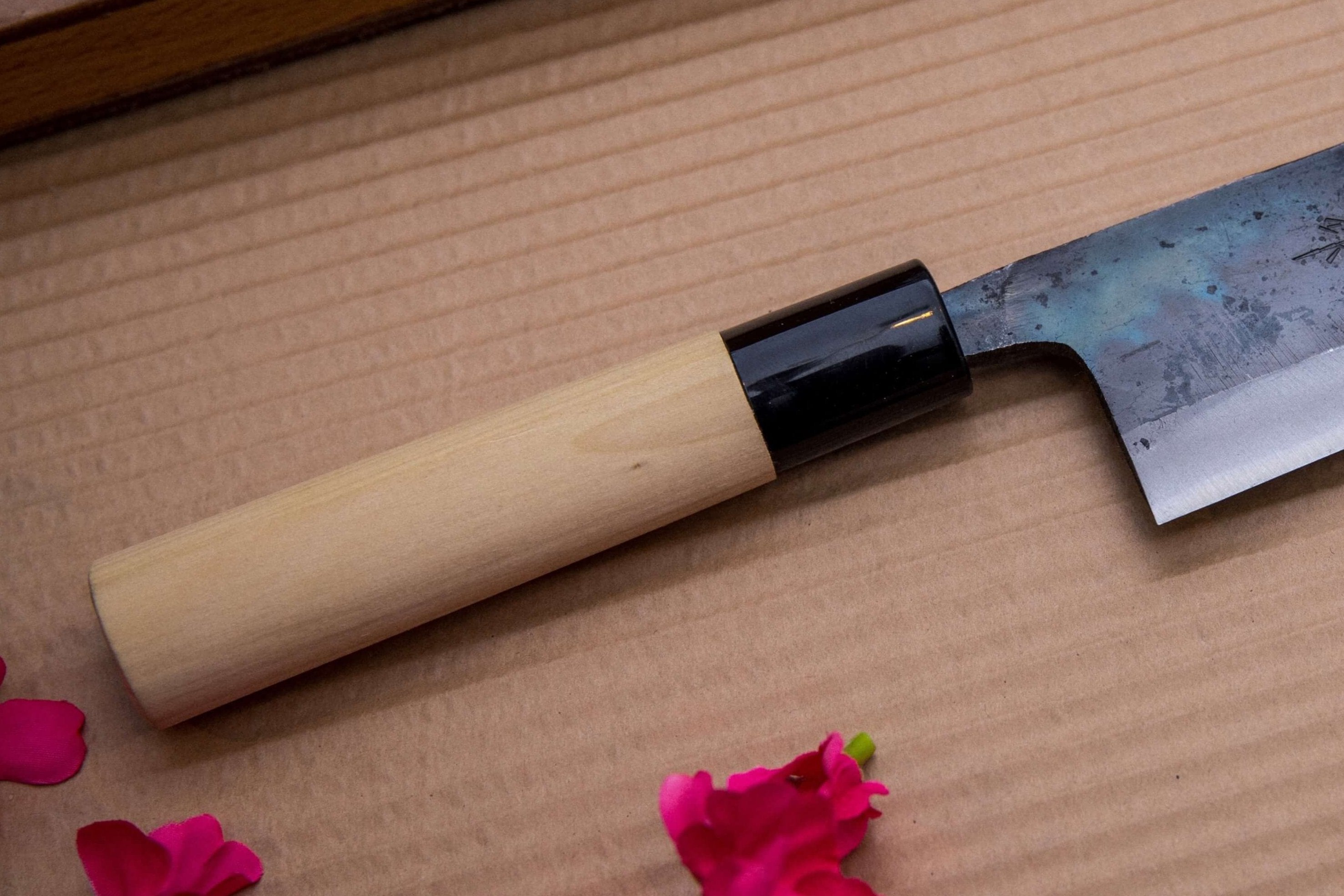 Några av våra japanska köksknivar är tillverkade av kolstål. Köksknivar med en hög kolhalt är oftast mycket dyrare än köksknivar som innehåller en lägre kolhalt, vilket beror på att de går att slipa med en mycket brant vinkel, vilket gör dem mycket vassare än de av rostfritt stål. Om du ser dig själv som ny i köket finns det många rostfria alternativ som kommer att passa dig bättre.