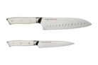 För finsmakaren i köket – detta tvådelade knivset från Markus Aujalay kombinerar japansk tradition, modern design och kompromisslös kvalitet. Med damaskussmidet knivblad av 67 lager stål och eleganta vita handtag blir det här setet en favorit för såväl hemmakocken som proffset.
