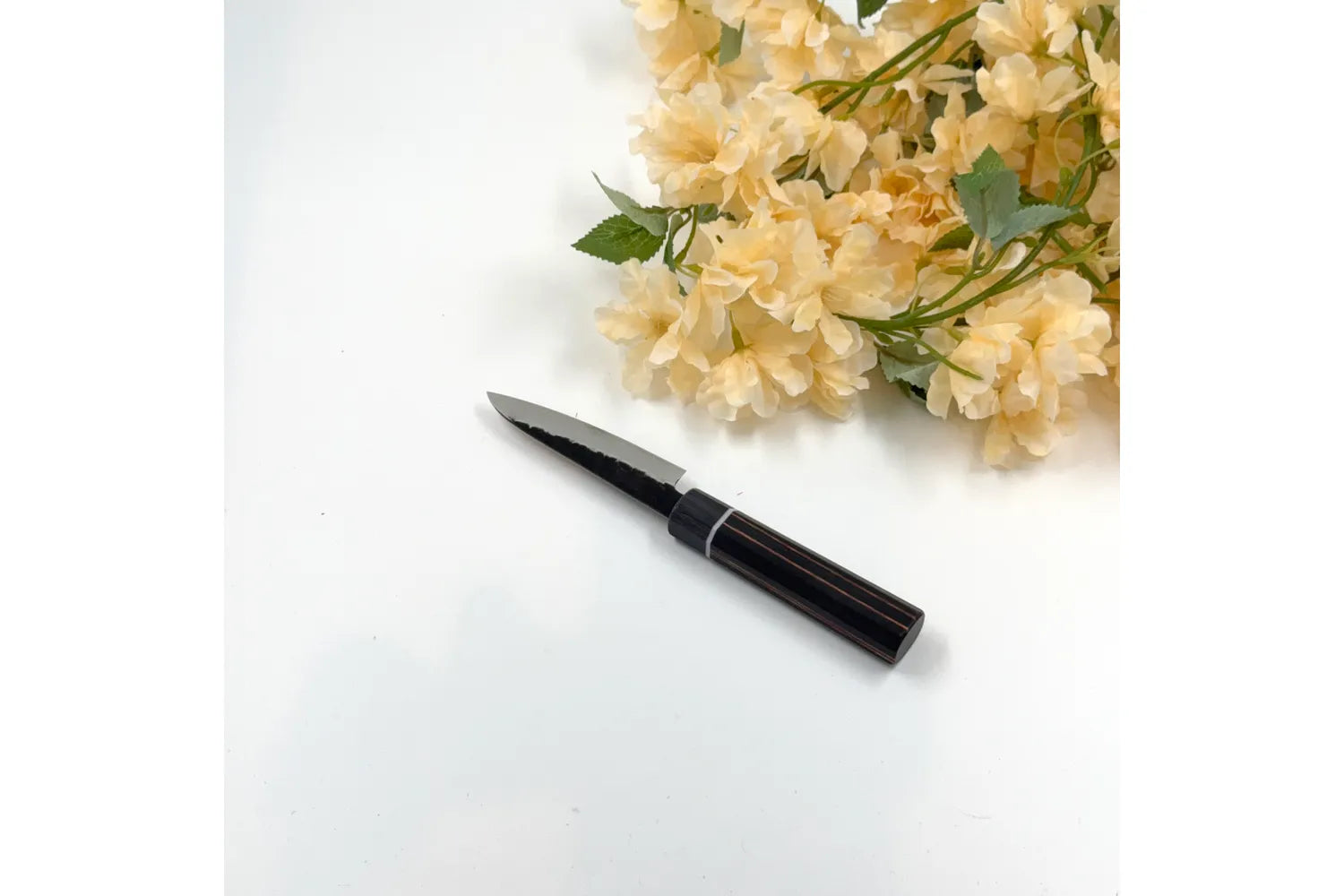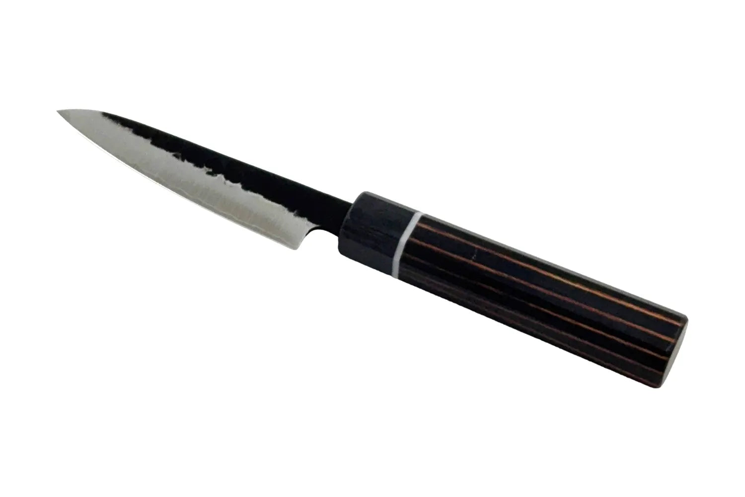Bladet har en traditionell Kurochi-finish, en mörk och rustik yta som ger kniven ett hantverksmässigt och autentiskt uttryck. Finishen ger varje kniv ett unikt utseende och förstärker seriens japanska estetik.