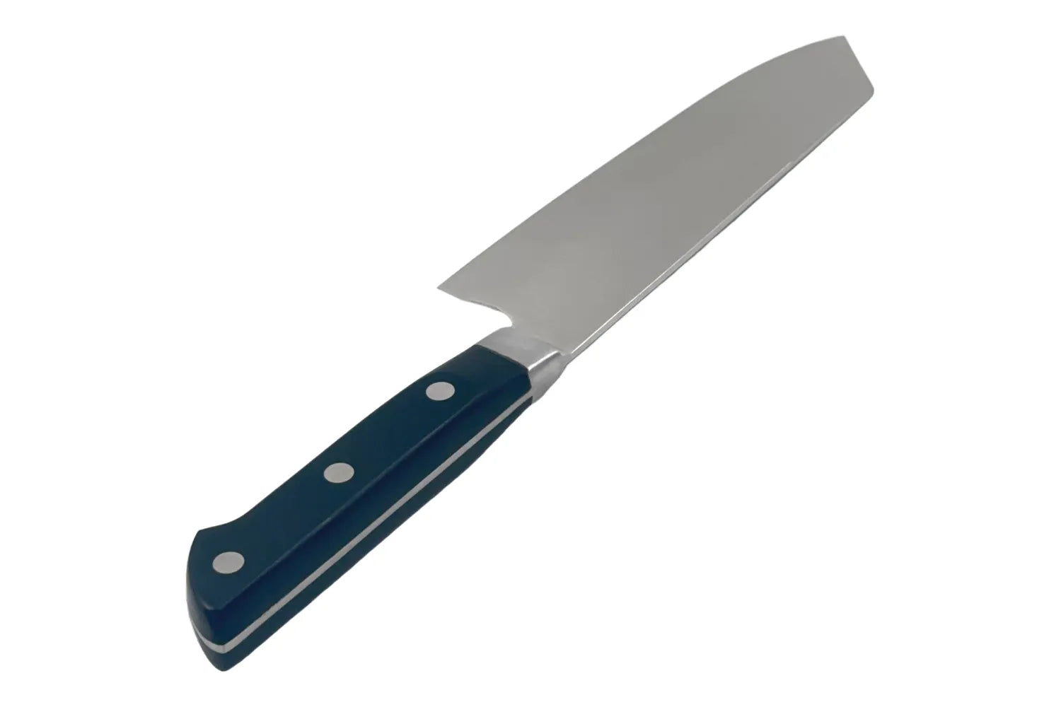 Surudoi Kockkniv Pro House Bunka 170mm är en högkvalitativ japansk kniv som kombinerar funktionalitet och precision, perfekt för en mängd olika skäruppgifter i köket. Med sin mångsidiga bladlängd på 170 mm är denna Bunka-kniv utmärkt för allt från skärning av grönsaker och kött till finkänslig skärning och tärning. Med sina 3 nitar i handtaget och tunna knivblad av MV-stål så är detta en kniv med en perfekt balans mellan skärpa, kontroll och estetik.